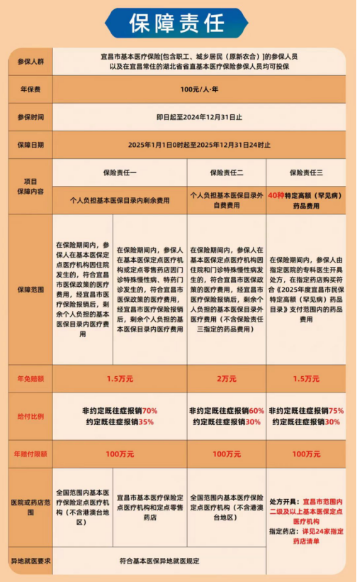 2025年度“宜昌市民保”保费为100元/人/年。