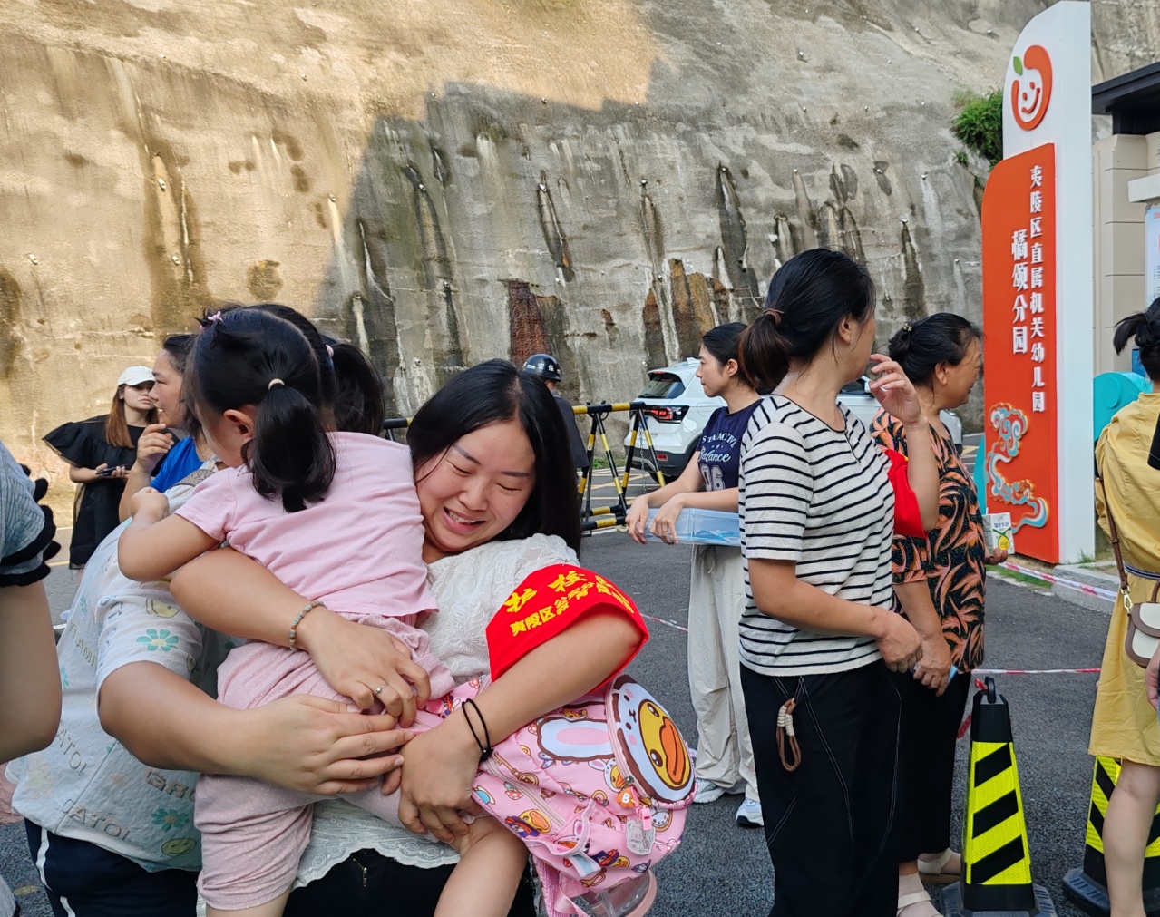 带着“小红帽”和“红袖章”的家长志愿者们用温暖的笑容迎接每一位新生,自然地从略显焦虑的家长手中牵过孩子的小手,用轻柔的话语安抚:“宝贝真棒,我们来一起找教室好吗?”“看,教室里有很多好玩的玩具呢!”志愿者们或是牵着孩子的手,或是蹲下来给他们一个鼓励的拥抱,有效缓解了孩子们的紧张情绪,也将家长们从“硬生生分离”的无奈与心疼中解放出来。