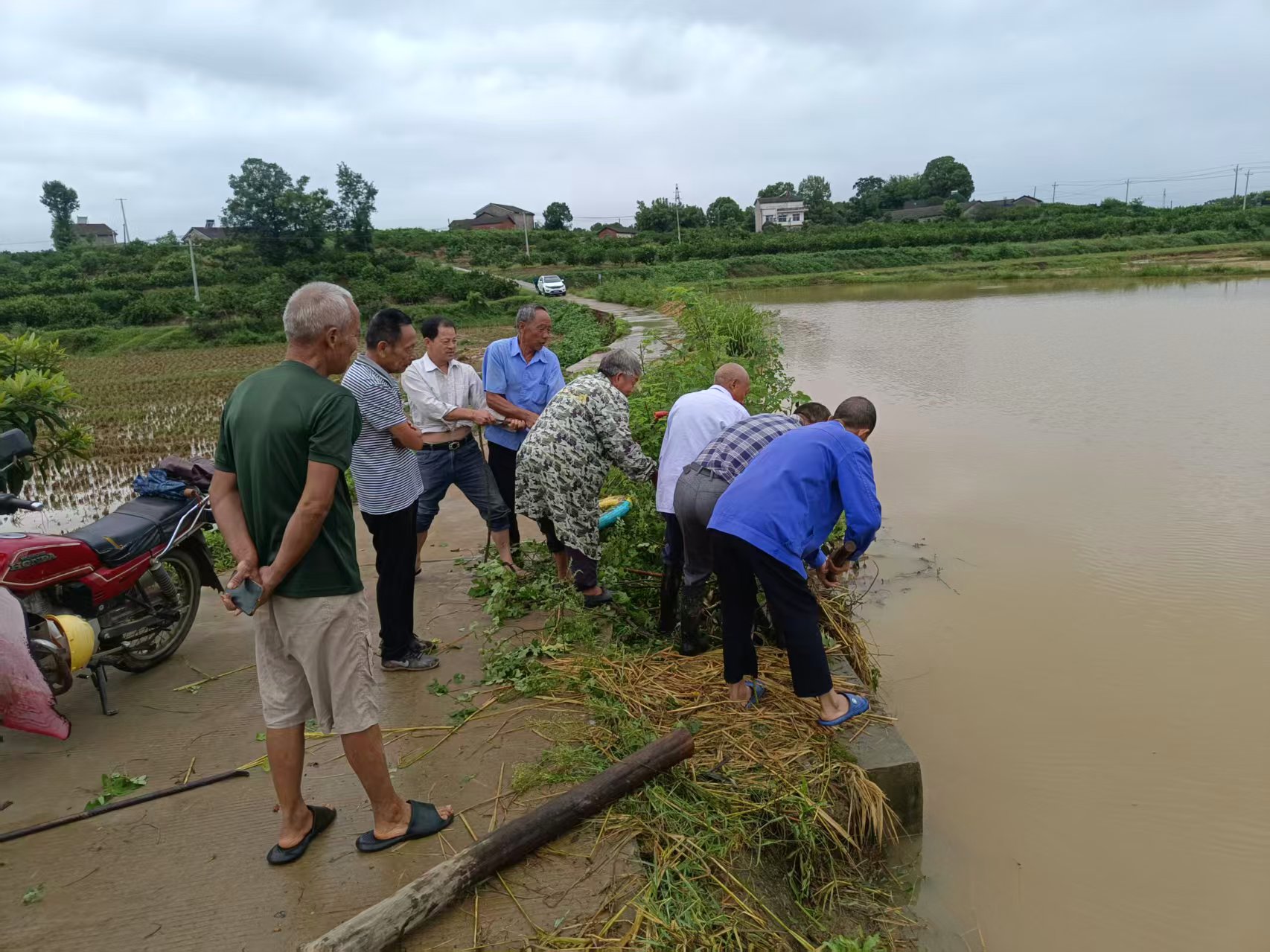 “咱们葫芦堰低剅堵住了,水都漫过公路了,男同志们都来搭把手!”三组组长付高科在小组微信群里一呼吁,不到10分钟,周围村民便带着铁锹、锄头、绳子等工具赶到了现场。大家分工明确,有的清理杂物,有的梳理排水沟,不顾雨水打湿了衣裤,埋头奋战1个多小时,成功打通排水“堵点”。面对农田受淹的情况,种植大户姜军手持钉耙沿着河道逐一清理淤泥和杂草,确保排水顺畅。村民们的善举,看似微不足道,但是如同涟漪般扩散。