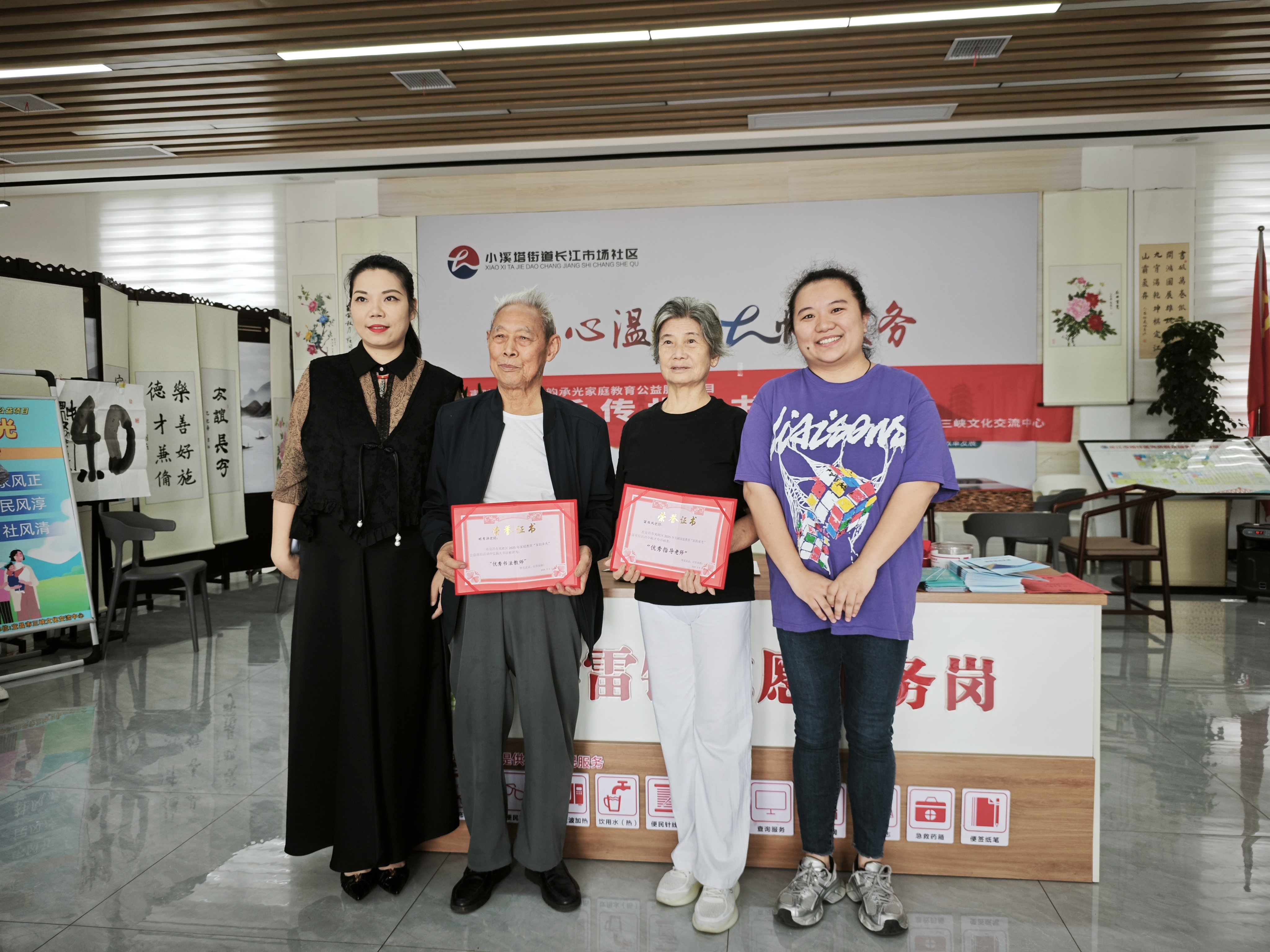 9月21日上午,由夷陵区妇联主办,宜昌市三峡文化交流中心承办的“墨香传世,书韵家风”家风书法展在夷陵区长江市场社区举办。展览以“老家训+新表达”为策展思路,分为家风书法作品解读、家风故事会和书韵家风三大环节。