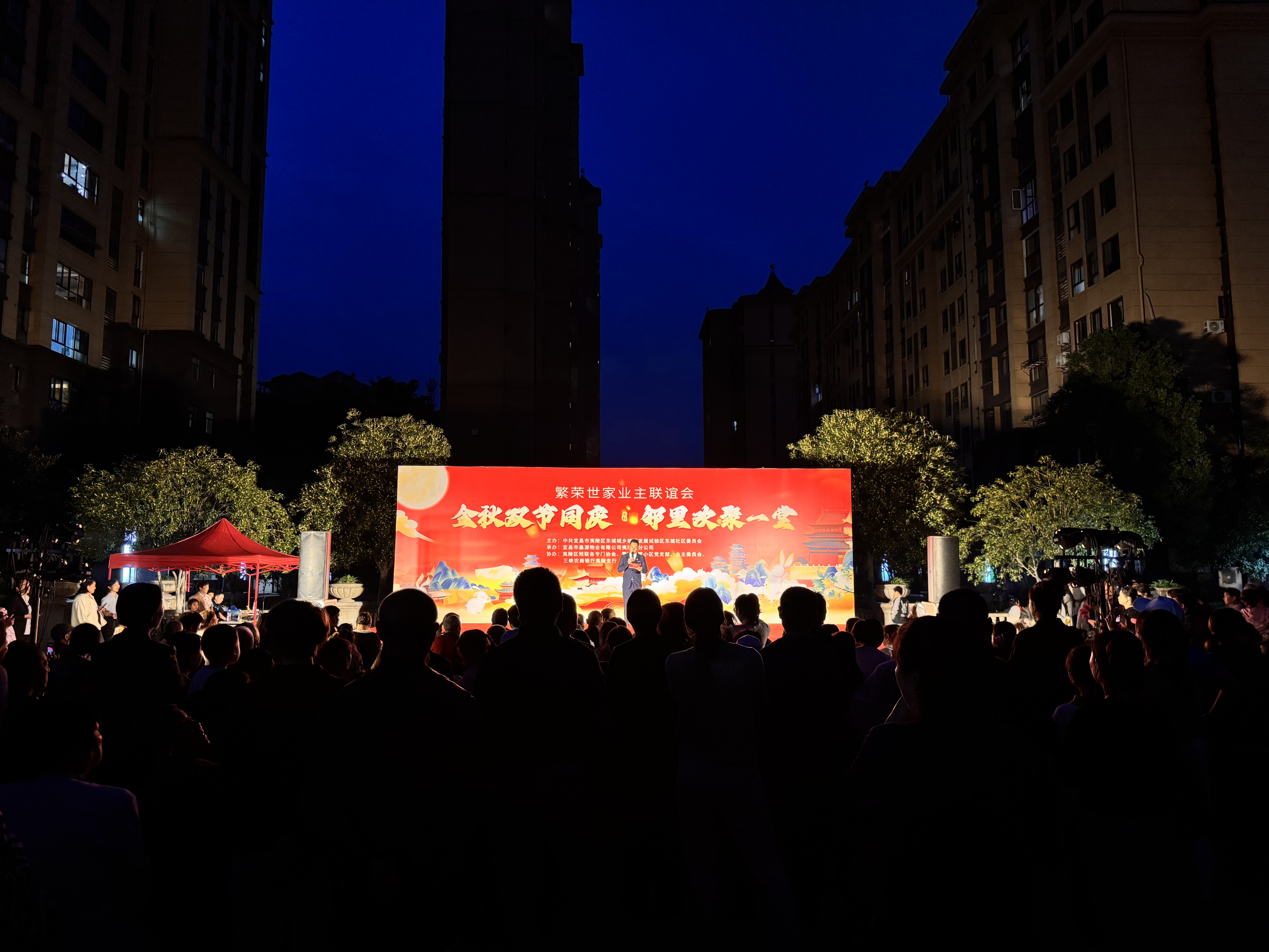 在国庆与中秋双节即将到来之际,9月26日晚,东城社区党委联合宜昌市鑫源物业有限公司夷陵区分公司、夷陵区残联各专门协会、三峡农商银行夷陵支行、繁荣世家小区党支部、业主委员会,在繁荣世家小区共同举办了“邻里欢聚一堂——繁荣世家业主联谊会”中秋晚会。