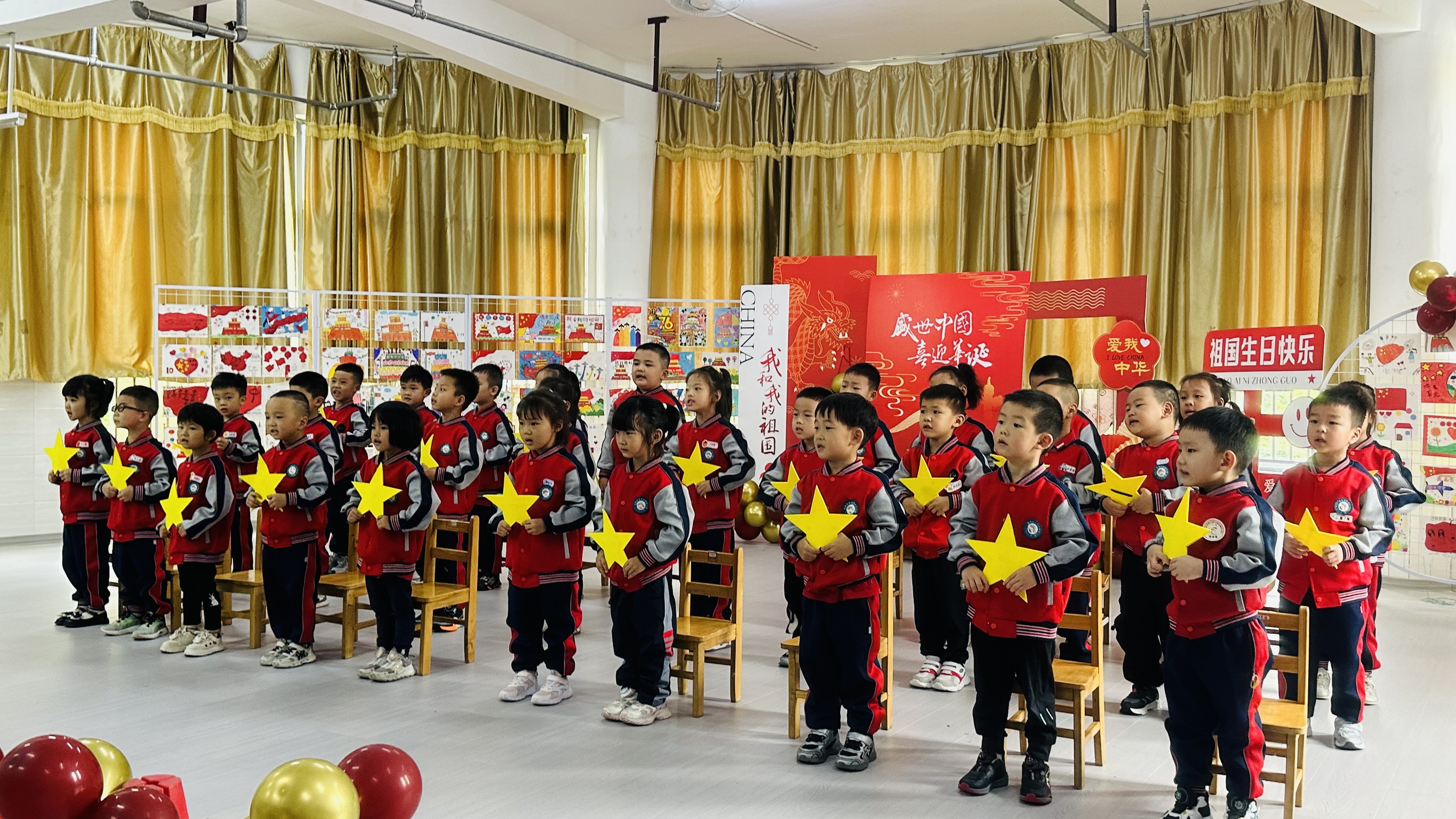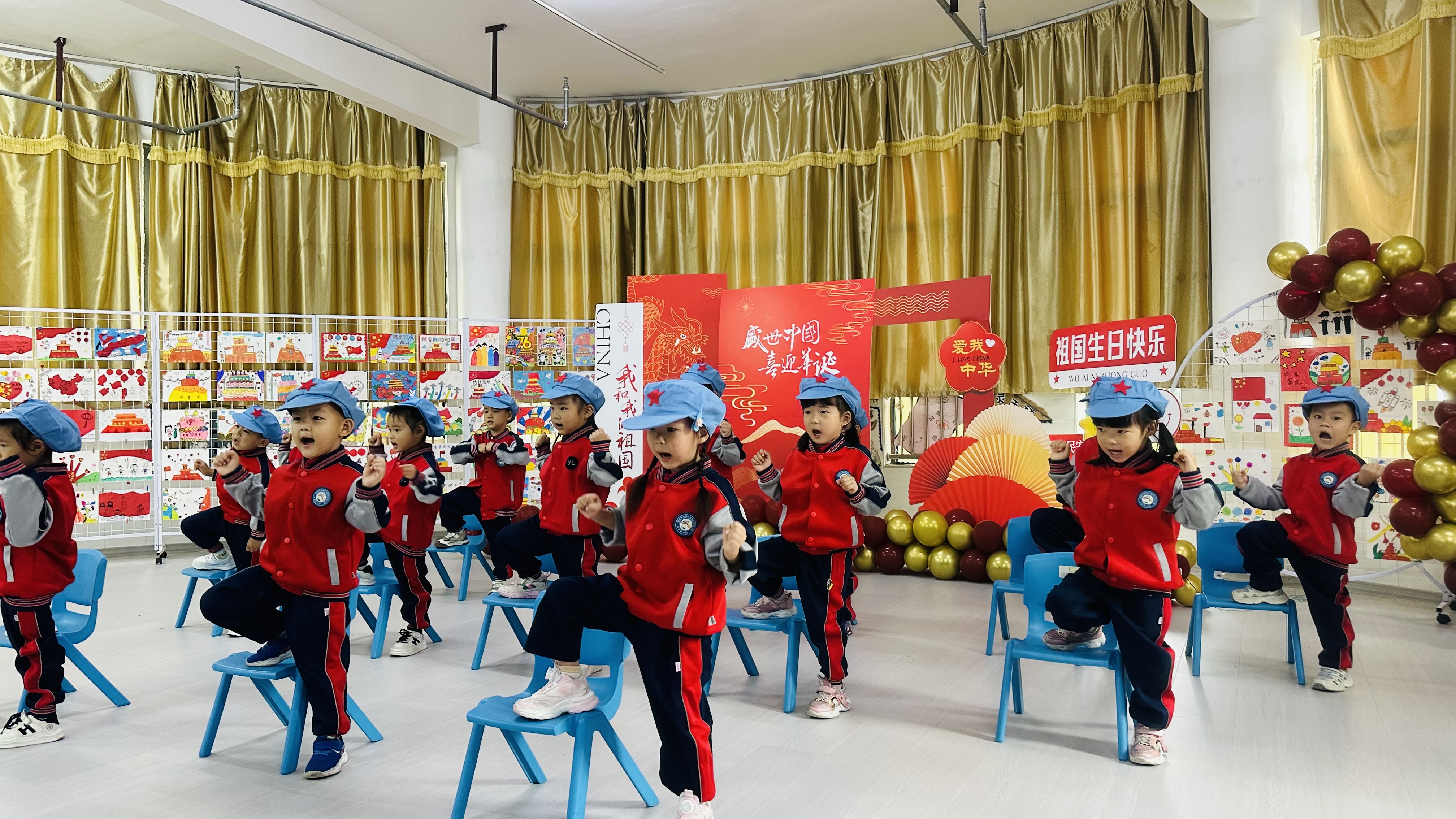 活动以庄严的升旗仪式点燃爱国热情,红歌传唱环节亮点十足:小班幼儿持国旗唱跳《娃哈哈》,萌态尽显;中班幼儿以整齐动作演绎《学习雷锋好榜样》,传递榜样精神;大班表演更添庄重,大四班戴“军帽”唱《红星闪闪》,大一、大二、大三班则用《中国么么哒》《祖国有我》《共产主义接班人》诉说对祖国的爱。教师团队合唱《红旗飘飘》,两位教师领唱深情动人,其余教师挥舞国旗伴唱,将活动推向高潮。