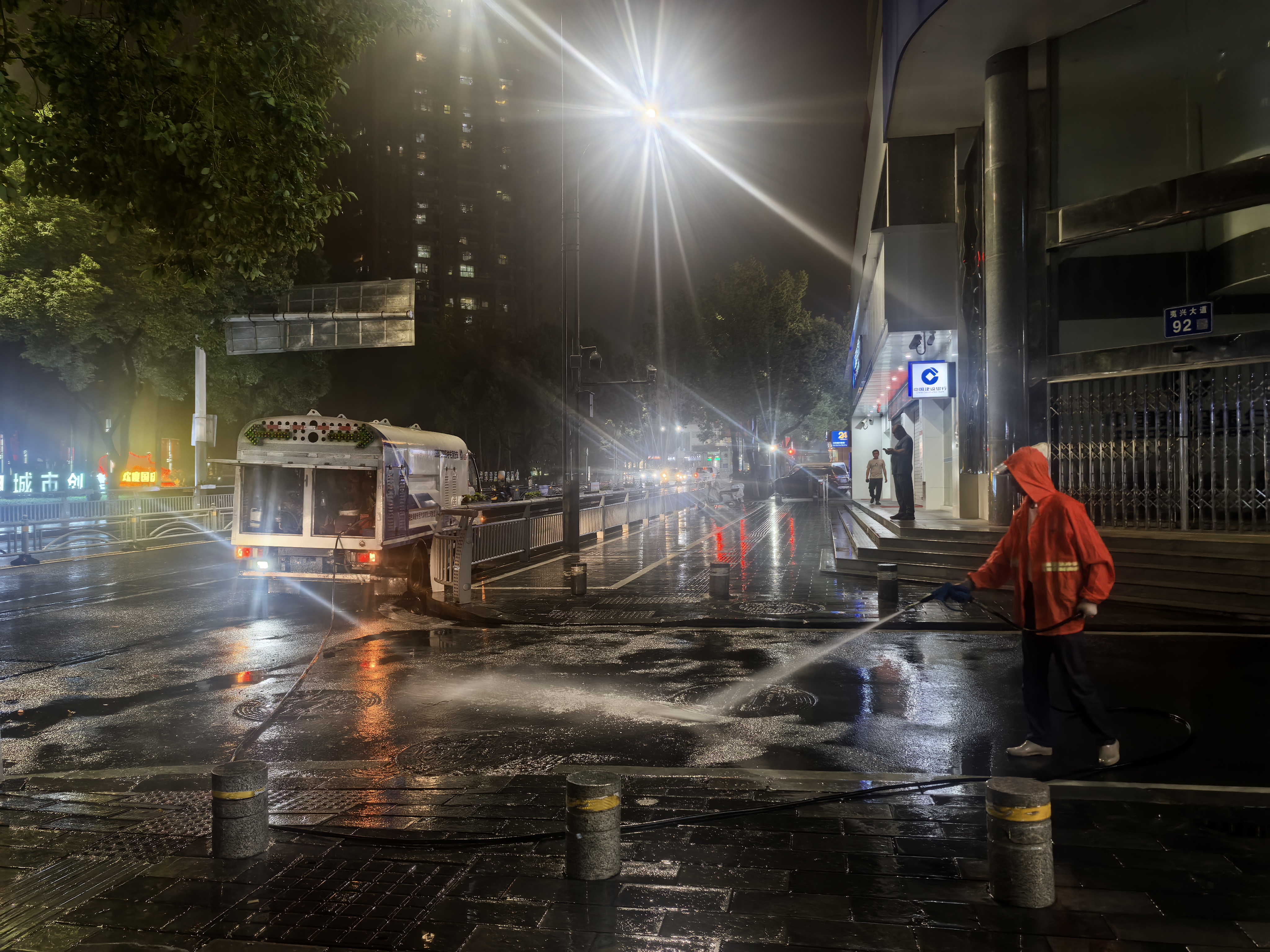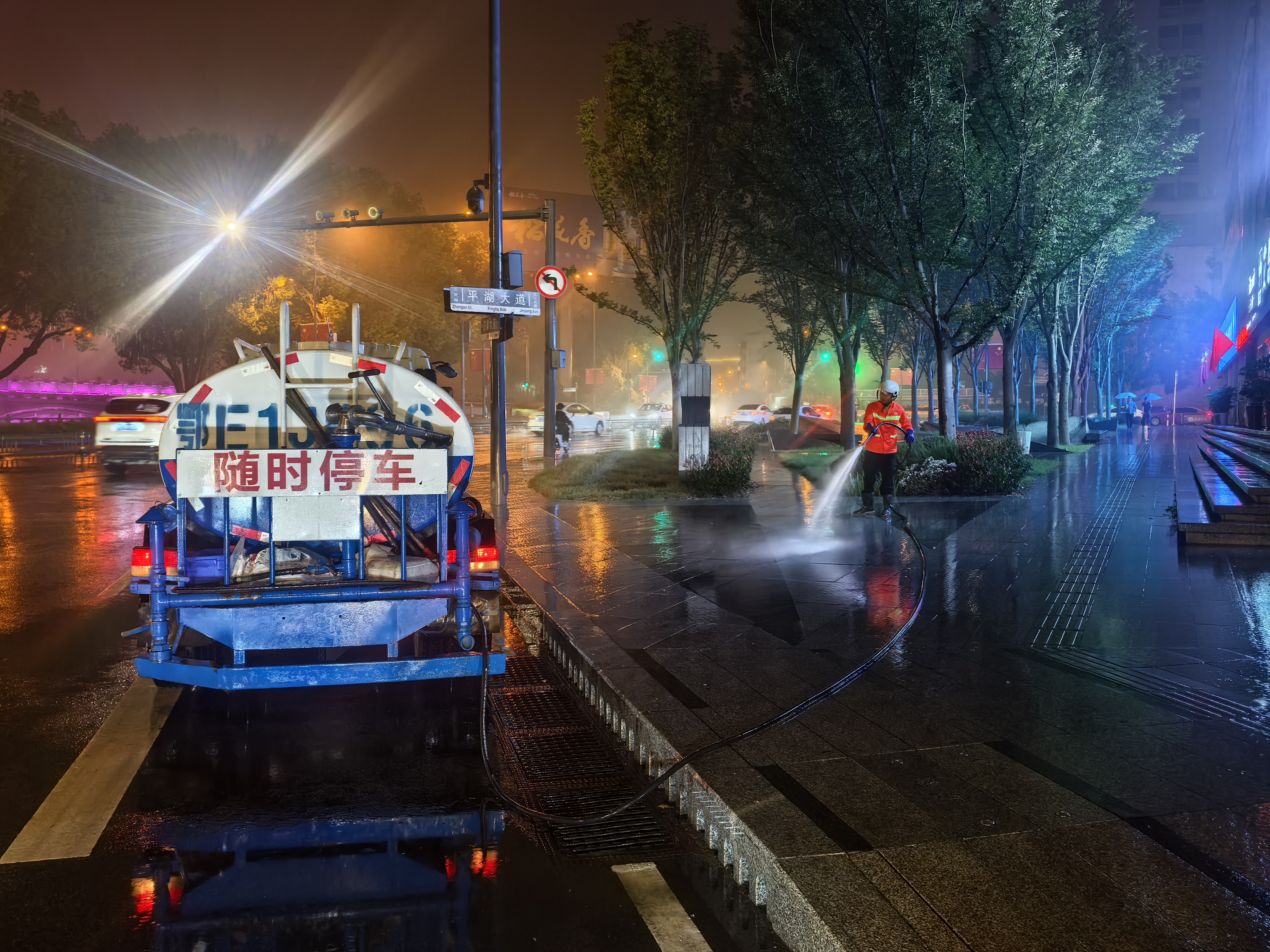 国庆将至,为营造更加干净整洁的城市环境,提升市民和游客的出行体验,夷陵区综合执法局环卫处提前谋划、周密部署,组建夜间冲洗专班,集中开展大清洗专项行动。