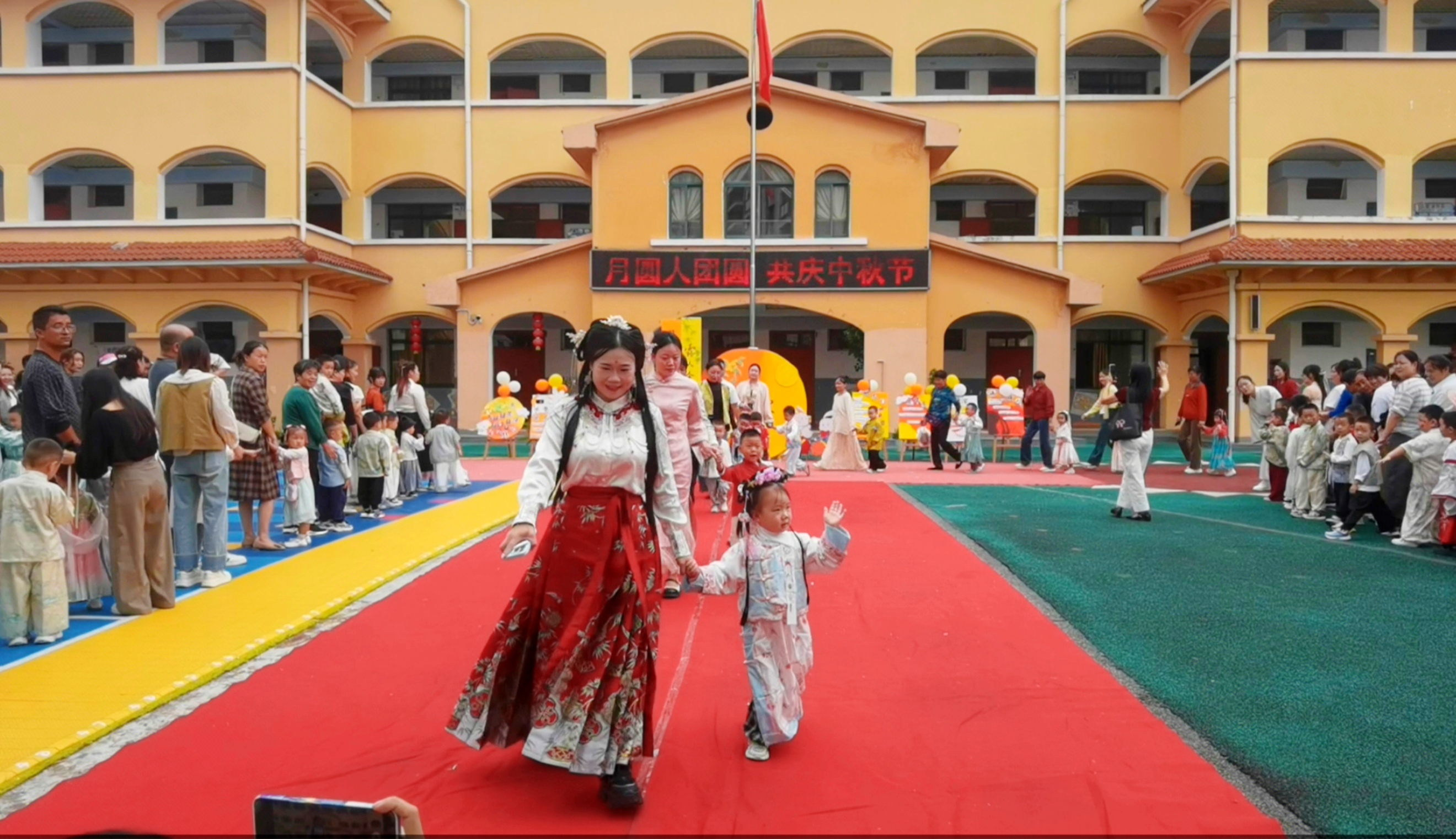 活动在温馨的开场中拉开帷幕。各班萌娃和家长身着汉服依次登场,衣袂飘飘尽显古韵。随后,幼儿代表国旗下讲话,稚嫩话语传递中秋祝福。园长致辞寄望,愿传统文化浸润童心。