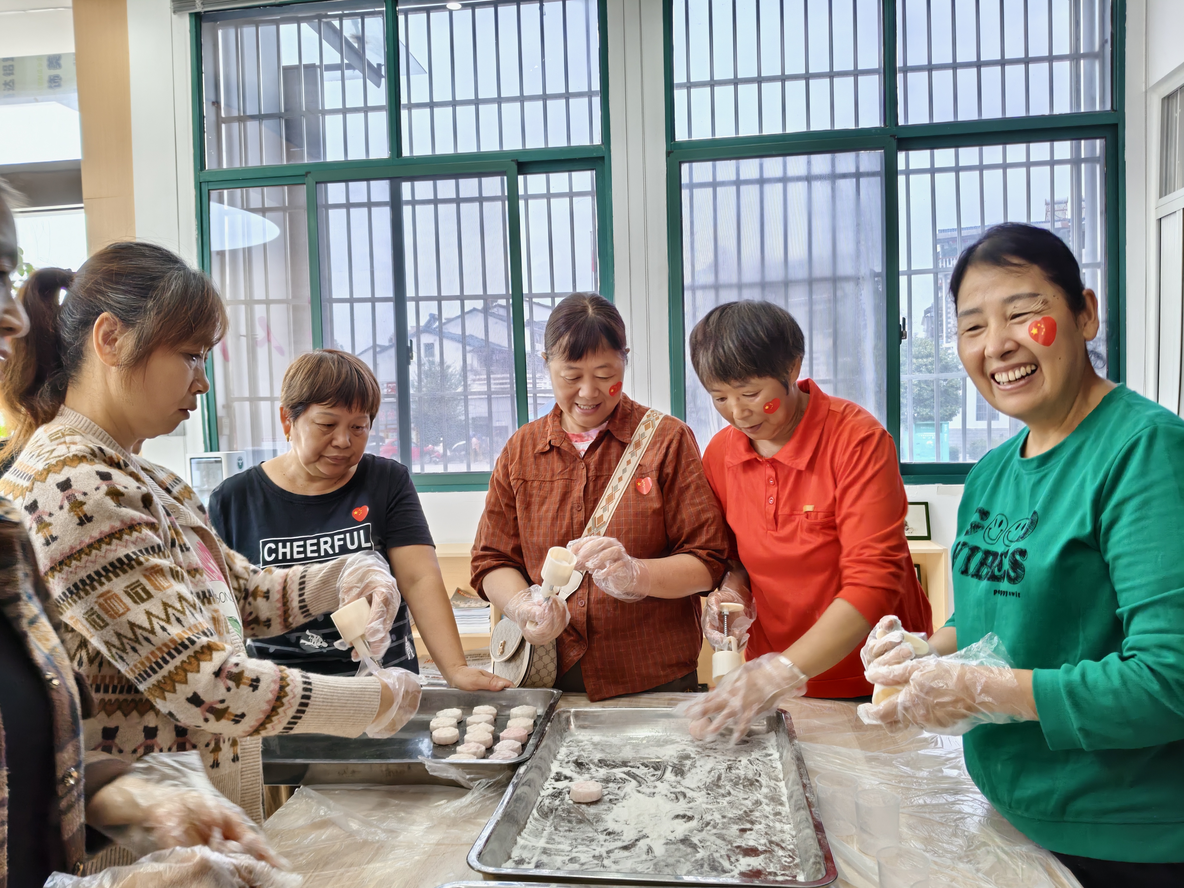 活动在欢乐的“击鼓传花”抢答环节中拉开序幕,老人们手举小红旗,踊跃参与国庆、中秋知识问答,现场笑声不断。随后的冰皮月饼制作环节更是将气氛推向高潮。在志愿者的协助下,大家揉面、包馅、压模,忙得不亦乐乎。不一会儿,一个个精致可爱的月饼便在老人们手中诞生。