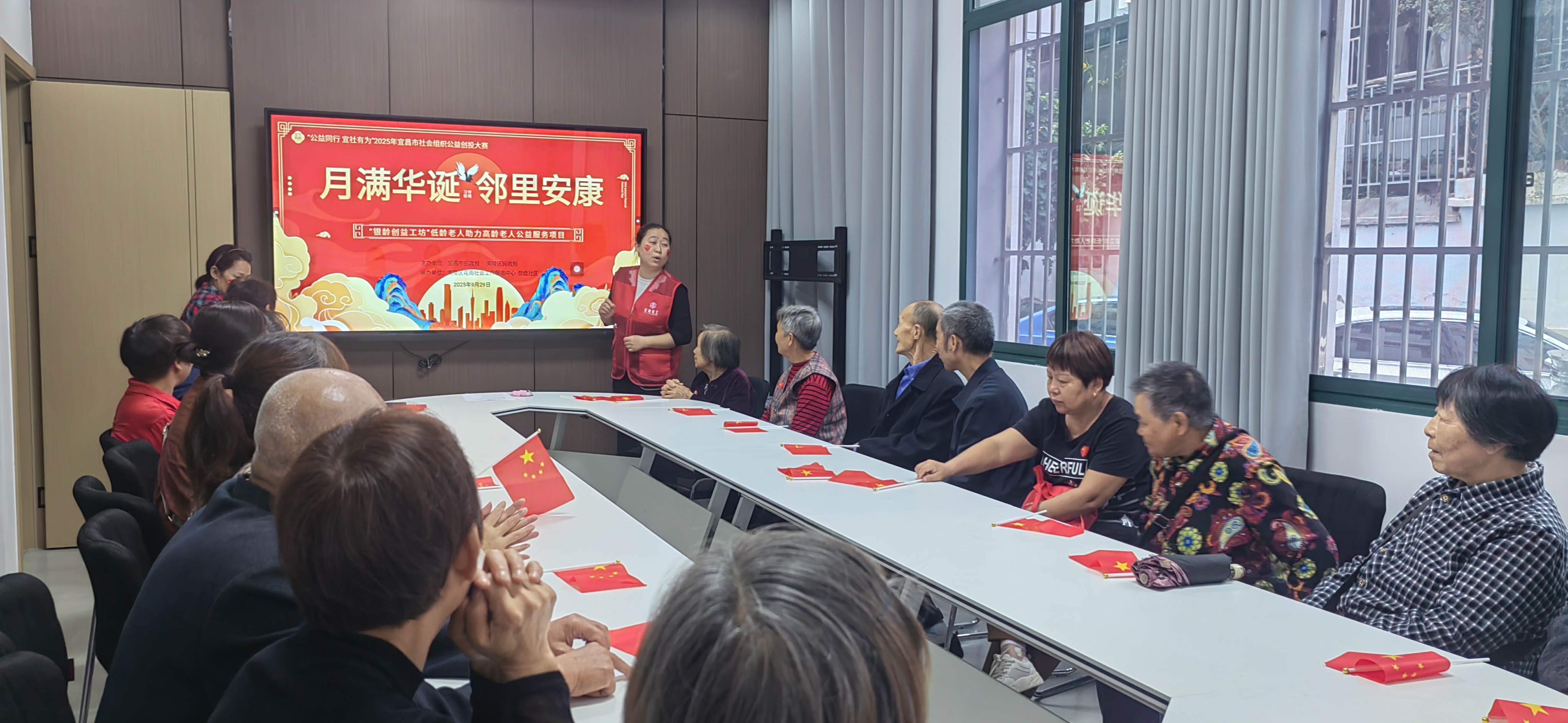 活动最后,全体参与者手持自制月饼与国旗合影留念,齐声祝福祖国繁荣昌盛、邻里幸福安康。整场活动在温馨感动中圆满落幕,不仅弘扬了中华民族敬老爱老的传统美德,也进一步营造了团结互助、和谐友爱的社区氛围。