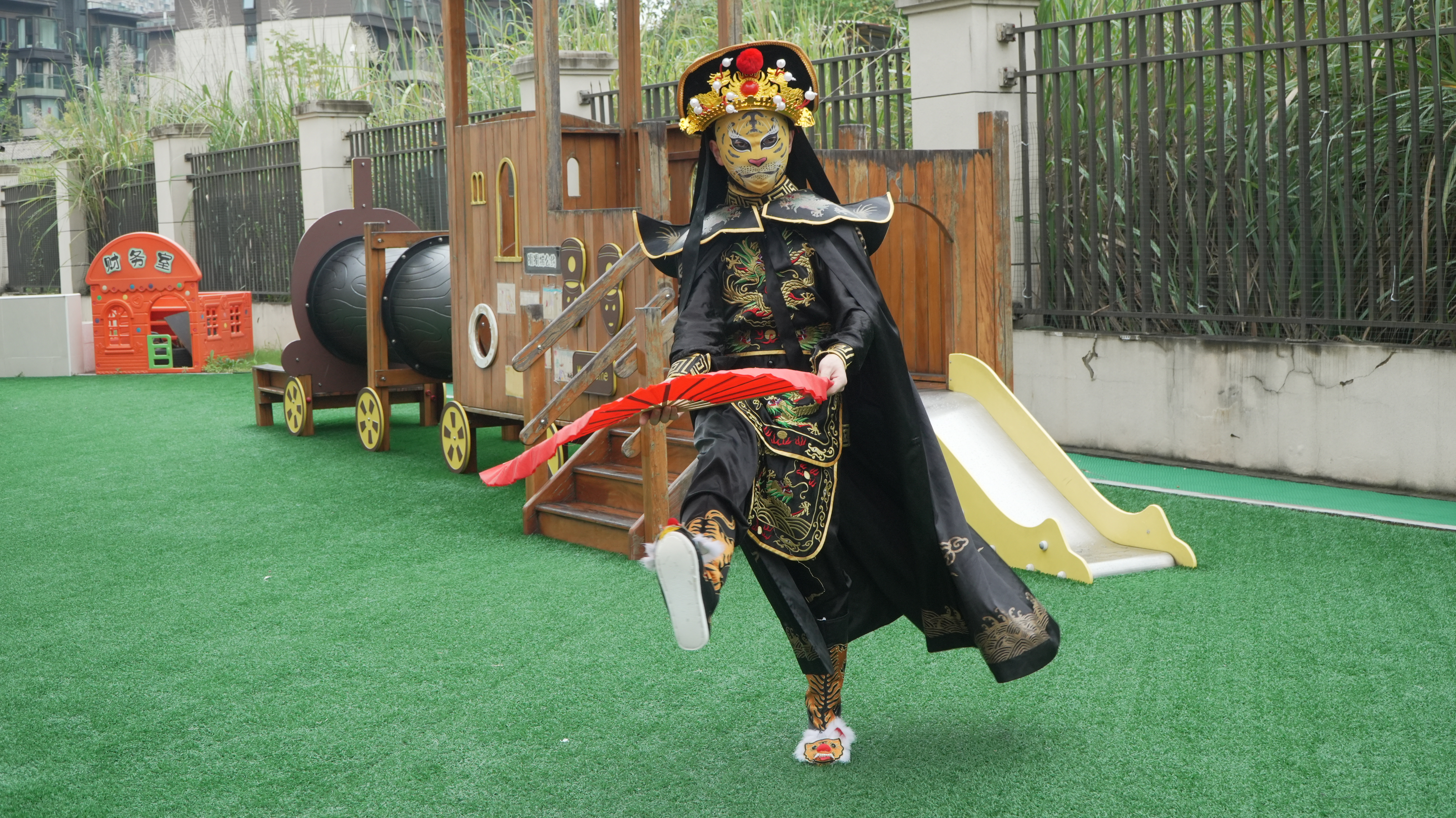 悦府分园则以分场馆主题活动为主,开展了《玉兔捣药》绘本阅读、月饼制作、绘制中国地图、突破重围等富有传统韵味的游戏。活动还特邀脸谱大师为孩子们带来精彩表演,一张张变幻的脸谱让孩子们直观感受中华国粹的独特魅力。最后,所有幼儿的作品集中展示,全体师幼合影留念,共同送上对祖国最美好的祝福。