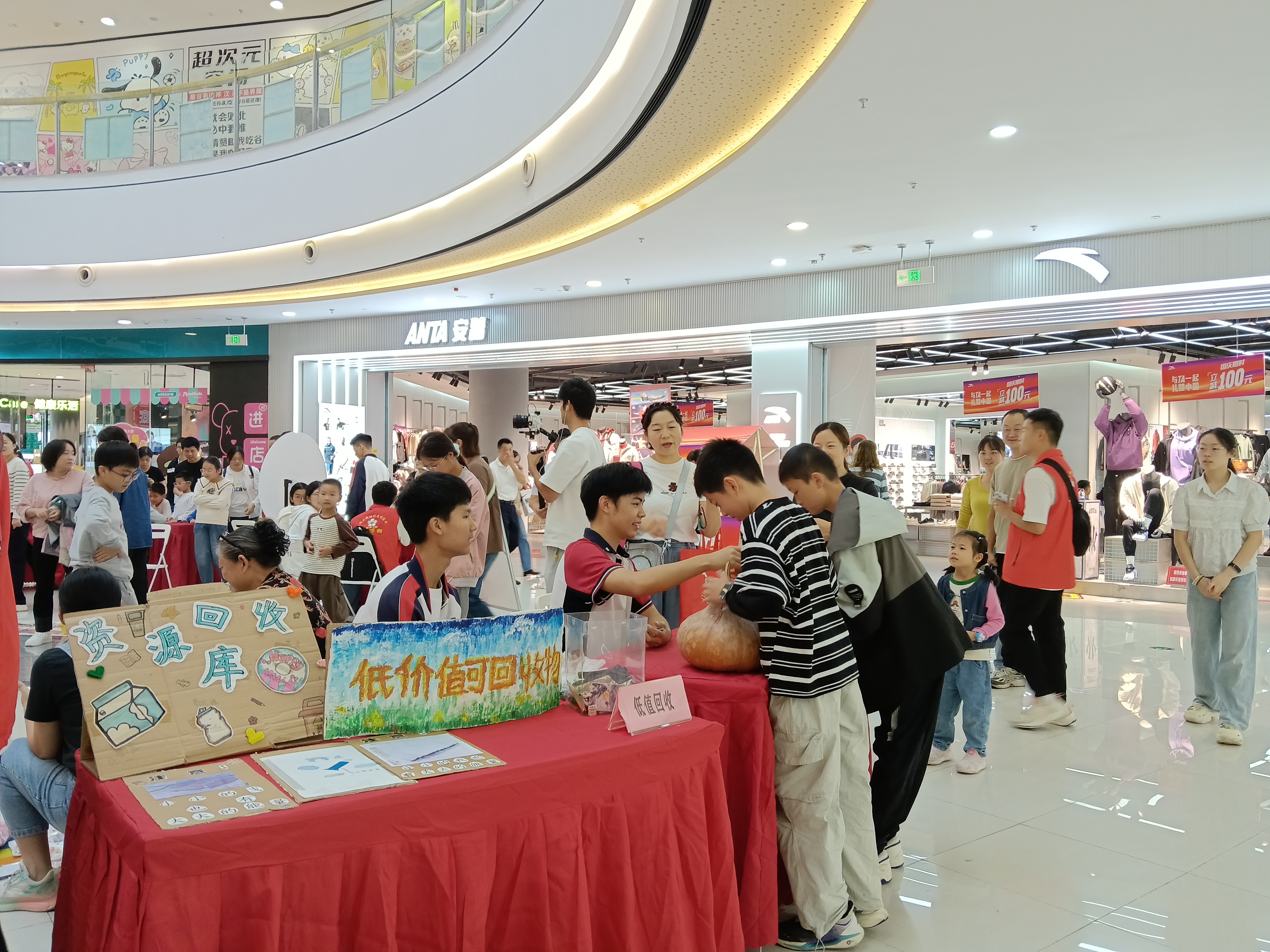 环保游园互动区是本次活动的“知识科普站”与“实践小课堂”。现场不仅展示“黑金土”、环保酵素、再生资源笔、台历、本子等环保成果,让参与者直观感受变废为宝的魅力;还设置环保知识竞猜、垃圾分类大转盘等互动环节——通过答题赢积分、抢瓶子转盘游戏,让垃圾分类知识变得易懂好记。此外,低价值可回收摊位支持用光盘、X光片、旧笔芯等兑换积分,图书捐赠摊位鼓励闲置图书循环利用,环保套圈摊位则以“以物换物”“积分兑换”等形式,让每一份参与都能收获绿色惊喜。