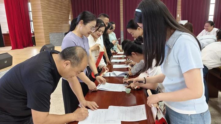 仪式现场,教学副校长刘倩宣读师徒结对名单,细致解读活动方案,清晰明确师徒双方的职责与成长目标。鸦鹊岭小学校长陈军、梅林校区执行校长苏建华亲手为受聘师傅颁发聘书。随后,师徒们依次行鞠躬礼、献暖心清茶、赠成长祝福,双手共同签订师徒帮扶协议。师傅代表赵艳、徒弟代表李彩云先后发言,分享育人初心与成长期望。陈军在总结中寄语师徒以“传帮带”共研教学,用实干践行“行而不辍”,携手为学校教育质量提升蓄力。