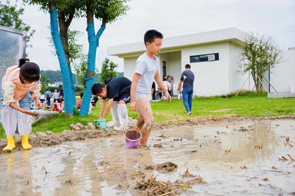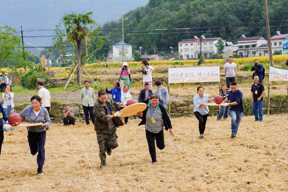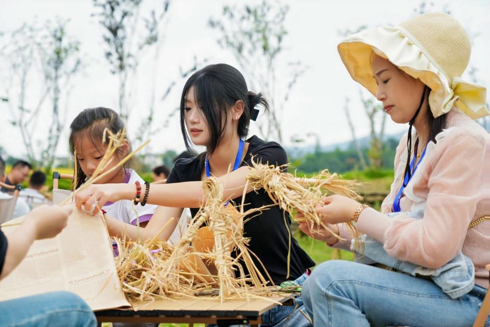 活动联办燃热情,民俗新潮共狂欢。稻田趣味运动会现场,“稻田运球”“田间拔河”等项目激战正酣,选手们脚踩泥土、奋力拼搏,围观群众的呐喊声此起彼伏。这边农耕竞技热火朝天,那边汉服爱好者巡游田间,稻草编织的雕塑成为网红打卡点。这场集农事体验、亲子互动于一体的嘉年华,是“活动联办”机制的生动实践。共建单位围绕“丰收、民俗、童趣、生态”四大主线,策划推出特色活动,既保留了农耕文化根脉,又融入了时尚元素。