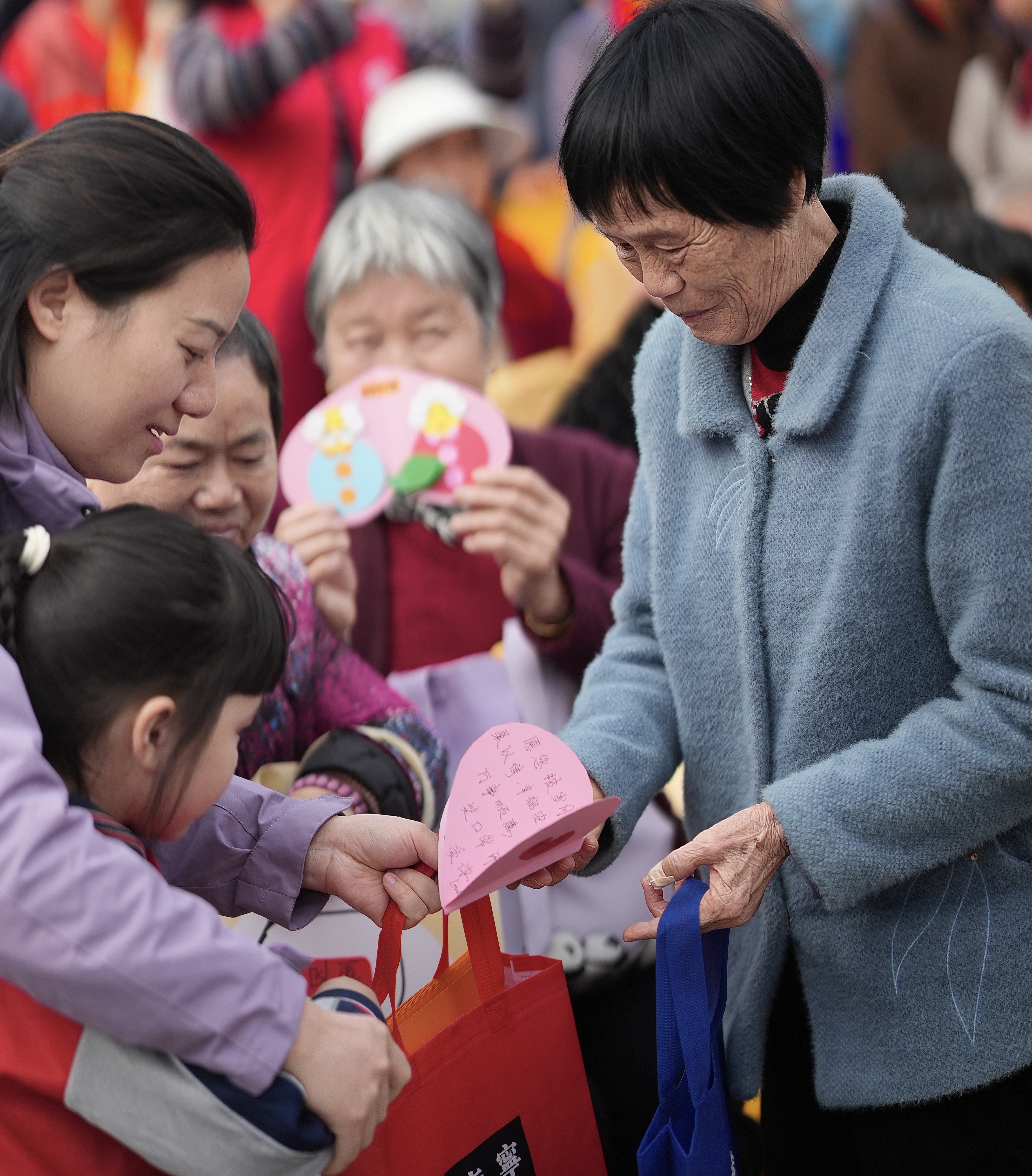 活动现场,孩子们用稚嫩却真诚的歌舞表演,点燃了现场气氛。随后,孩子们为爷爷奶奶们送上了自己亲手制作的暖心礼物。那一刻,稚嫩与年迈的美好交汇,现场洋溢着跨越年龄的温情与感动。