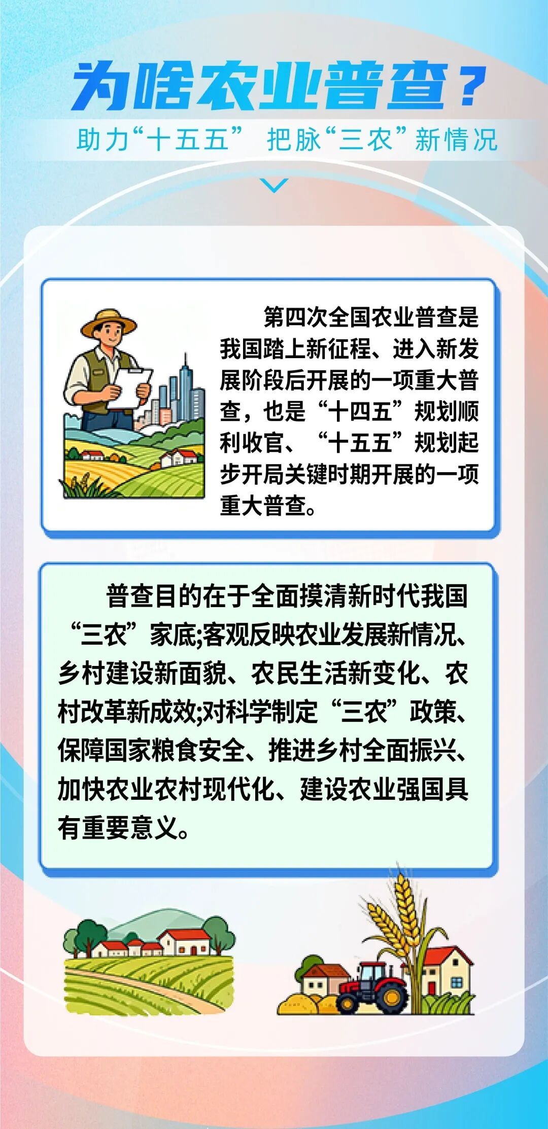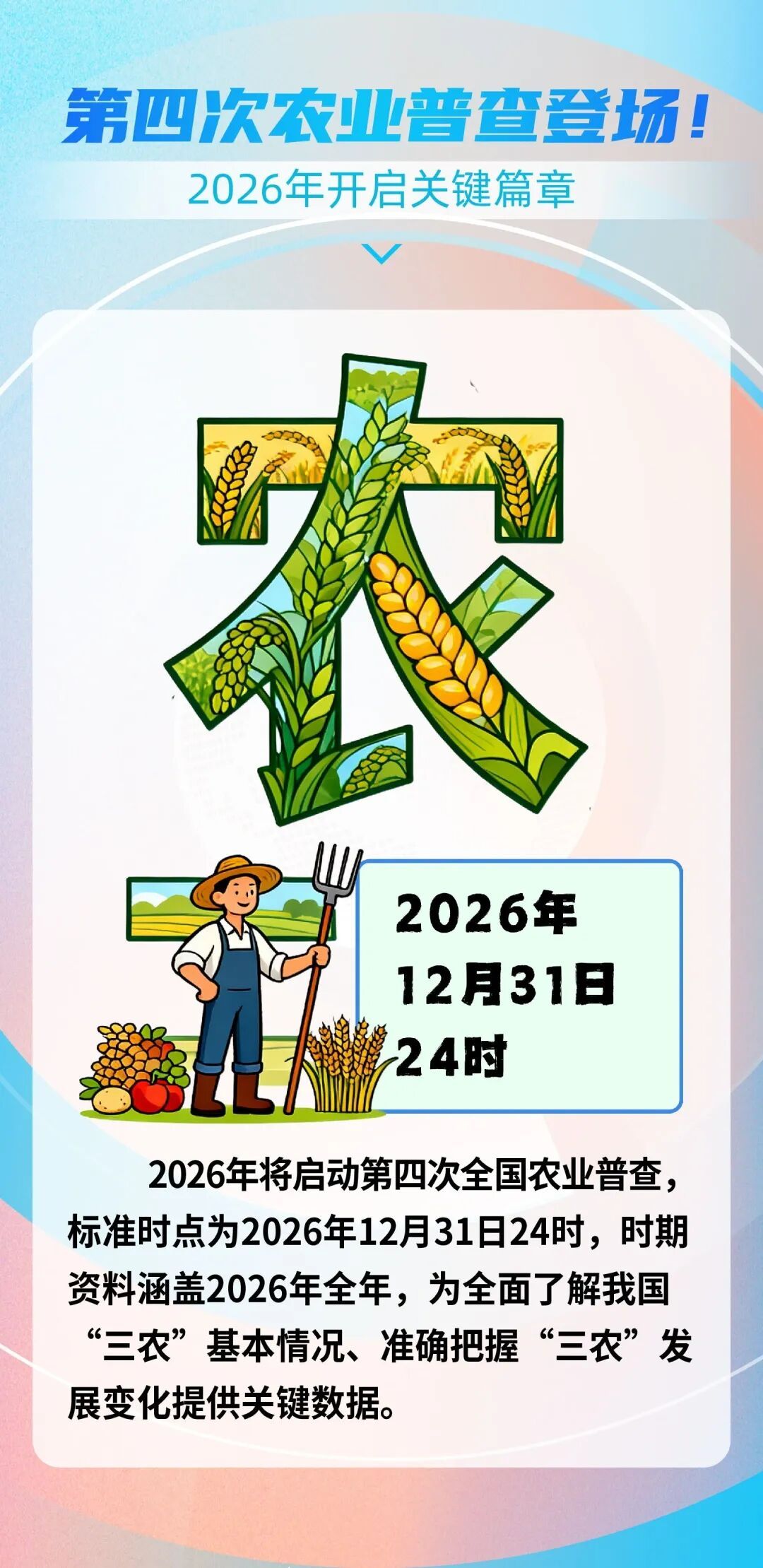 第四次全国农业普查知多少~ 2025-10-27 10:38 0 什么是全国农业普查? 第四次全国农业普查都有什么内容? 第四次全国农业普查将如何开展? 还在为 “全国农业普查” 犯迷糊 别着急! 让你一文全明白 速来围观~ (来源:杭州统计 编审:高秉龙)
