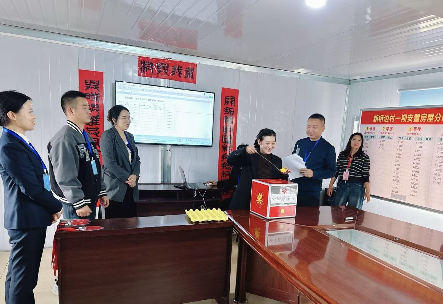 10月24日下午,东城试验区新桥边村第三批安置房分房工作圆满收官,6户村民通过公开抽签的形式,分配到了期待已久的8套安置房。