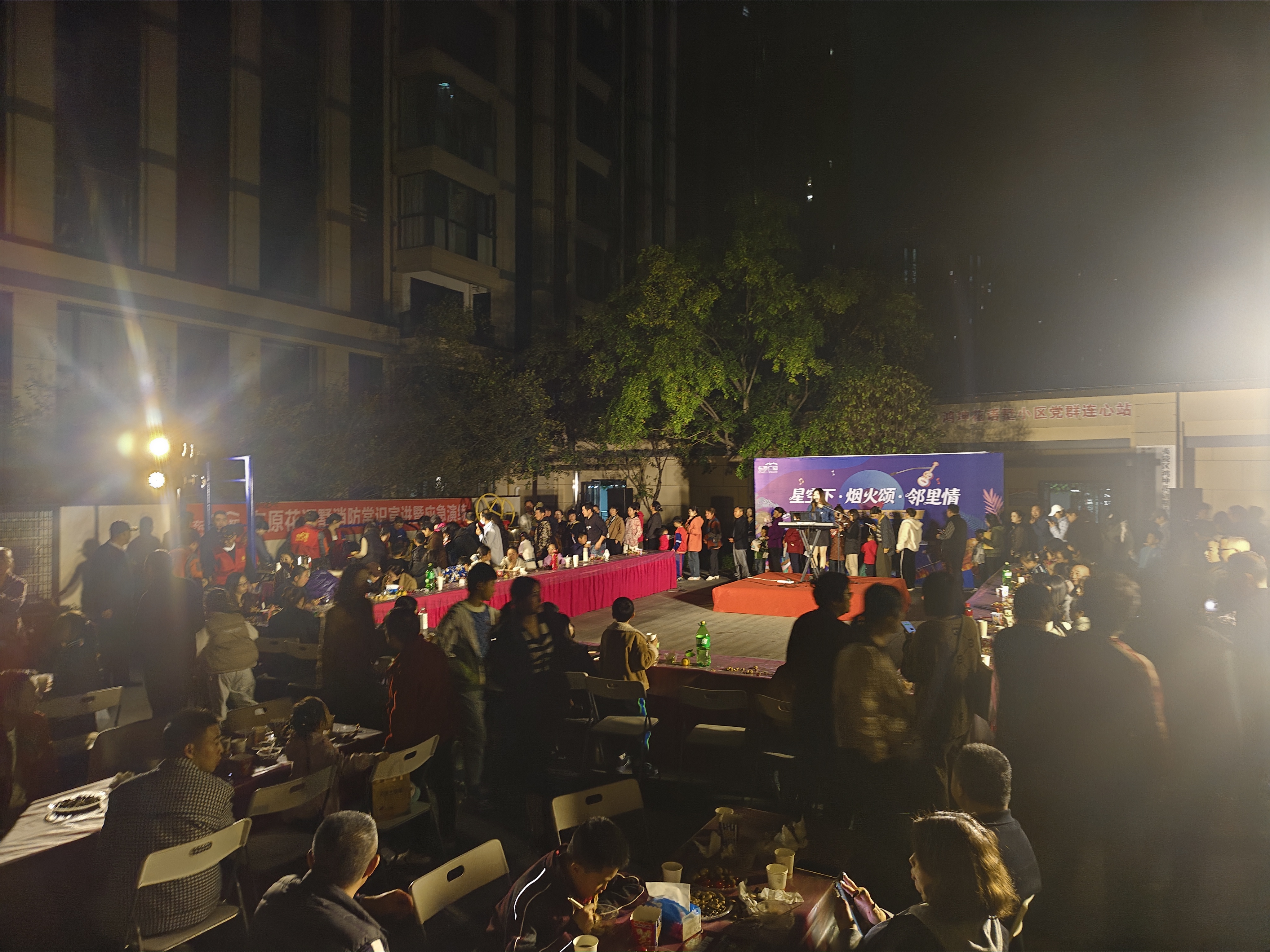 10月24日晚,东城试验区锦湖社区花语墅小区活动室中心广场热闹非凡,“星空下・烟火颂・邻里情”美食音乐节在此如期举行。数百名业主怀着期待与喜悦的心情齐聚一堂,在美食与音乐中,拉近邻里之间的距离,感受社区的温暖与和谐。