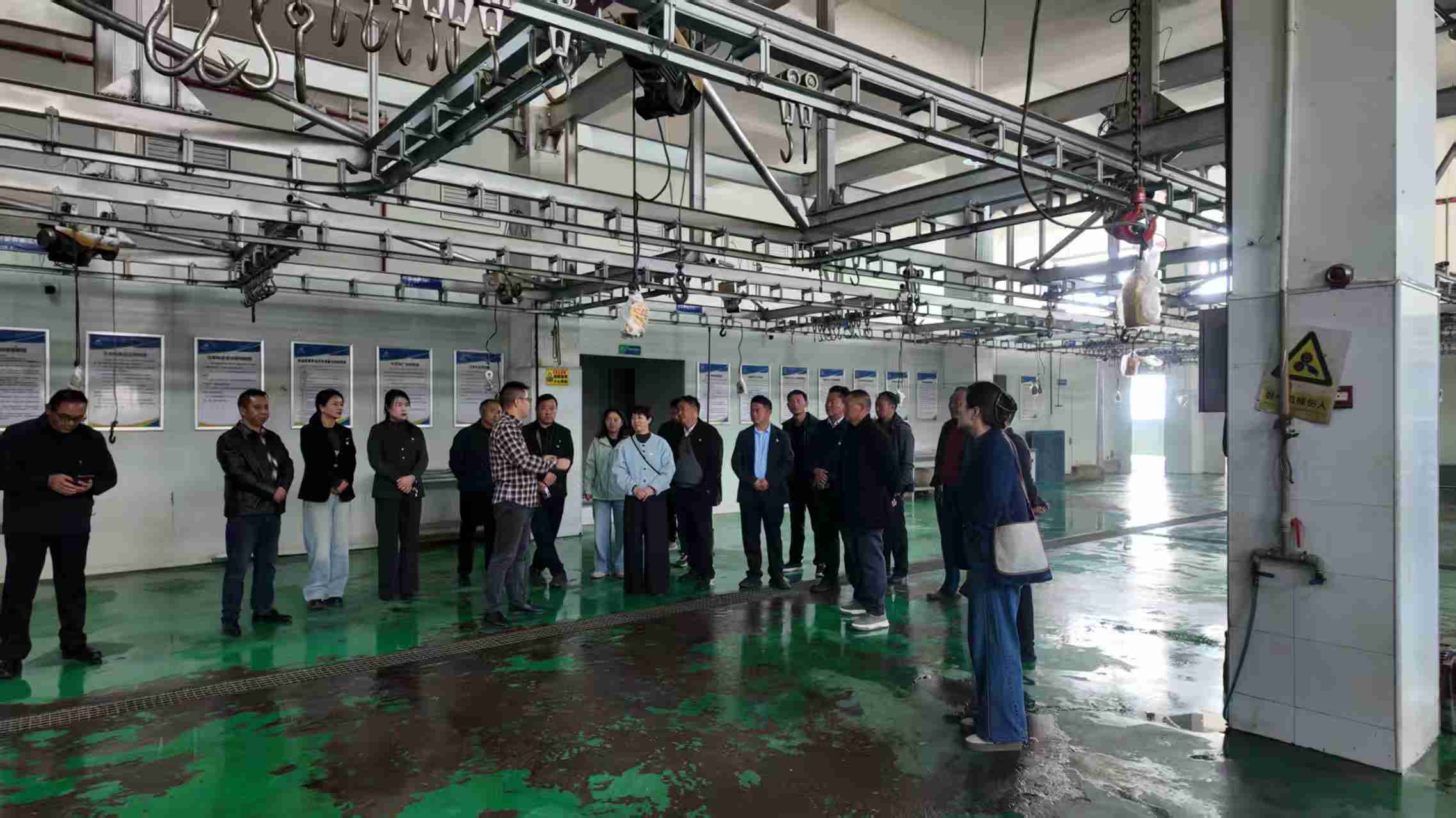 活动首站,全体参与党员来到了鸦鹊岭镇凤凰观村肉牛养殖场,详细了解肉牛的品种选育、饲养模式、市场销售及经济效益,对现代化畜牧养殖技术与管理模式有了直观认识。随后,队伍前往金银岗屠宰场进行参观,考察肉类加工、冷链物流等产业链延伸环节,思考如何完善本地农业产业链条,提升产品附加值。