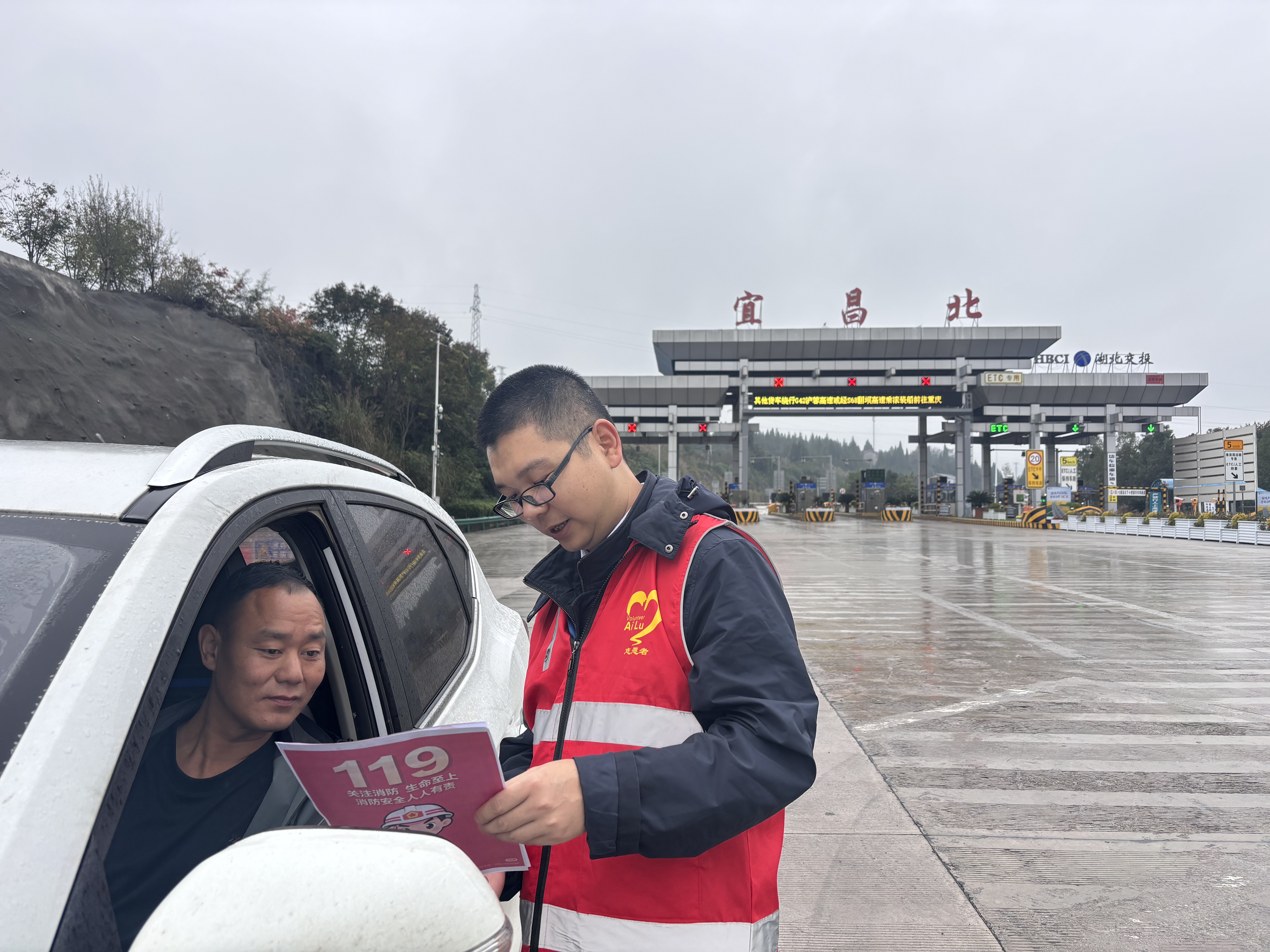 在第34个中国消防宣传日来临之际,11月9日,宜昌北收费站“爱路-AiLu”志愿服务队开展“关注消防·平安出行”主题宣传活动,将消防安全知识与高速公路出行场景深度结合,为过往司乘筑牢出行“防火墙”。