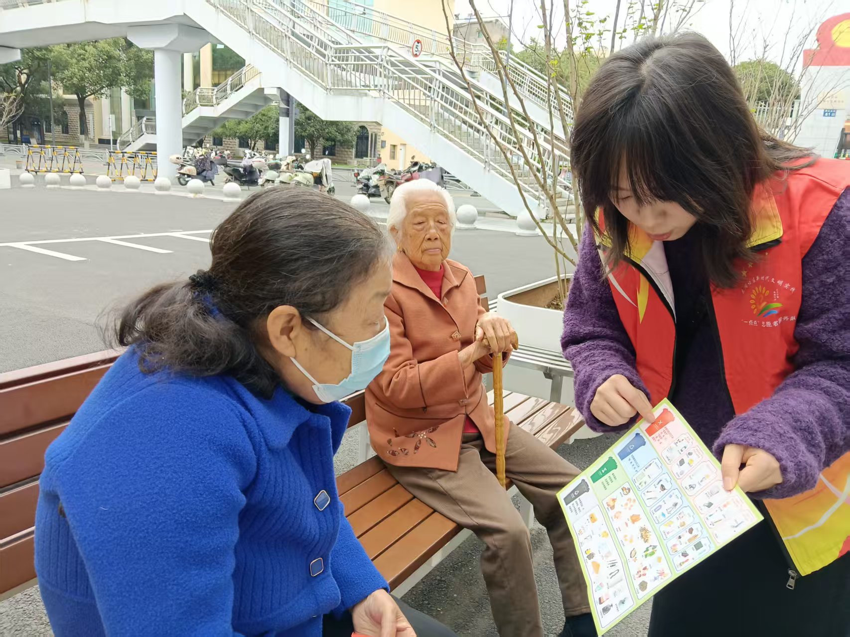 为切实解决老年居民在垃圾分类中“看不清、分不准”的难题,近日,东湖社区网格员在日常巡查中,向老年居民宣传垃圾分类知识。