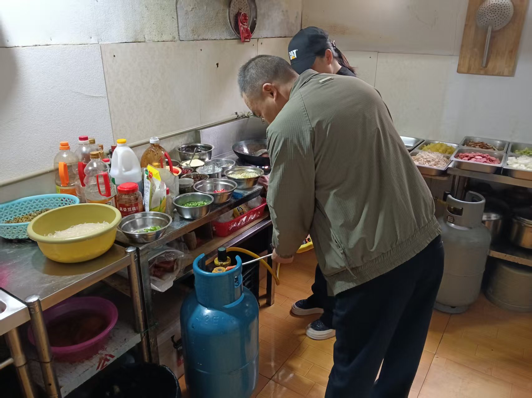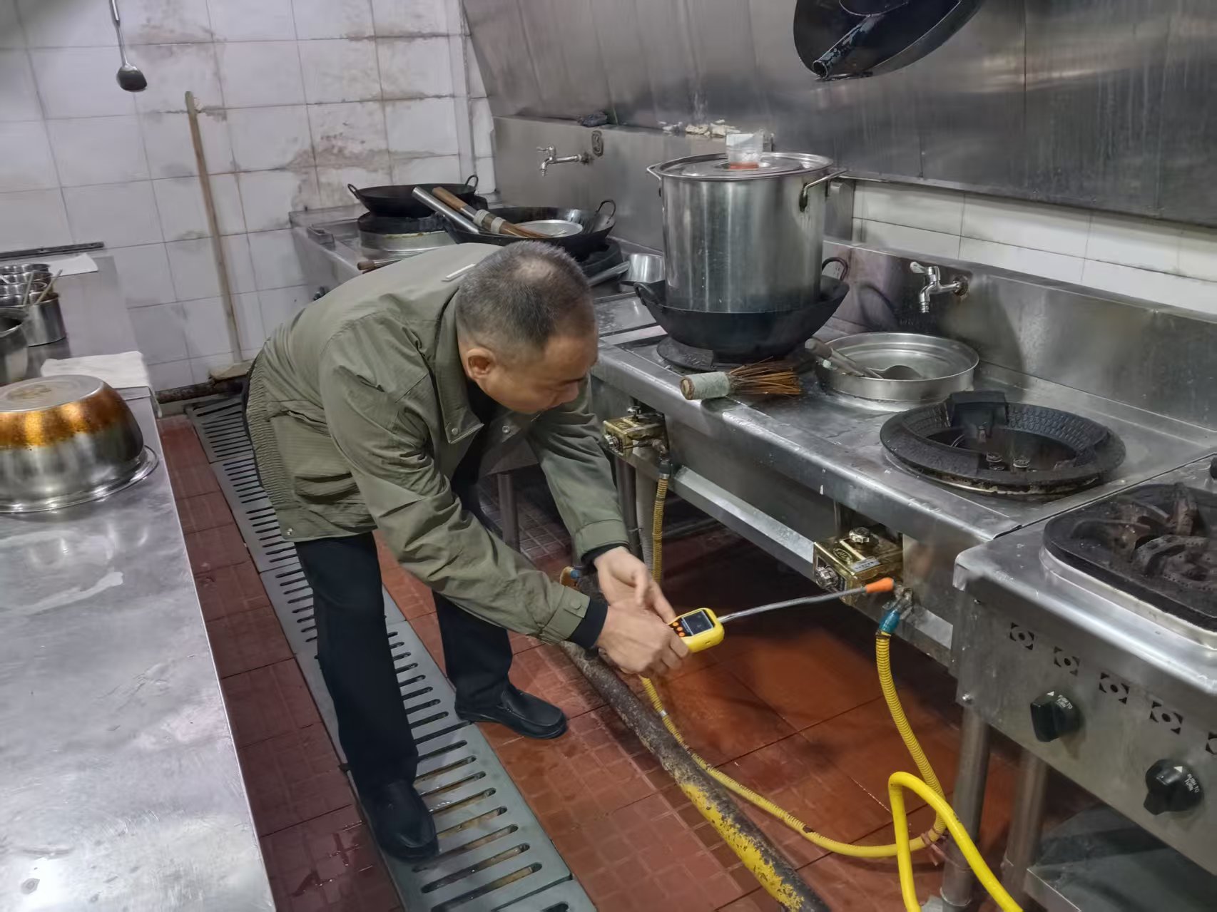 排查小组以老旧小区、沿街商铺为重点排查区域,逐户、逐店上门检查。工作人员仔细查看燃气管道是否存在老化、破损、私拉乱接现象,燃气灶具、阀门是否完好有效,有无泄漏情况,燃气报警器是否正常通电运行,通风条件是否达标,同时提醒居民及商户规范存放液化气钢瓶,远离火源、热源。