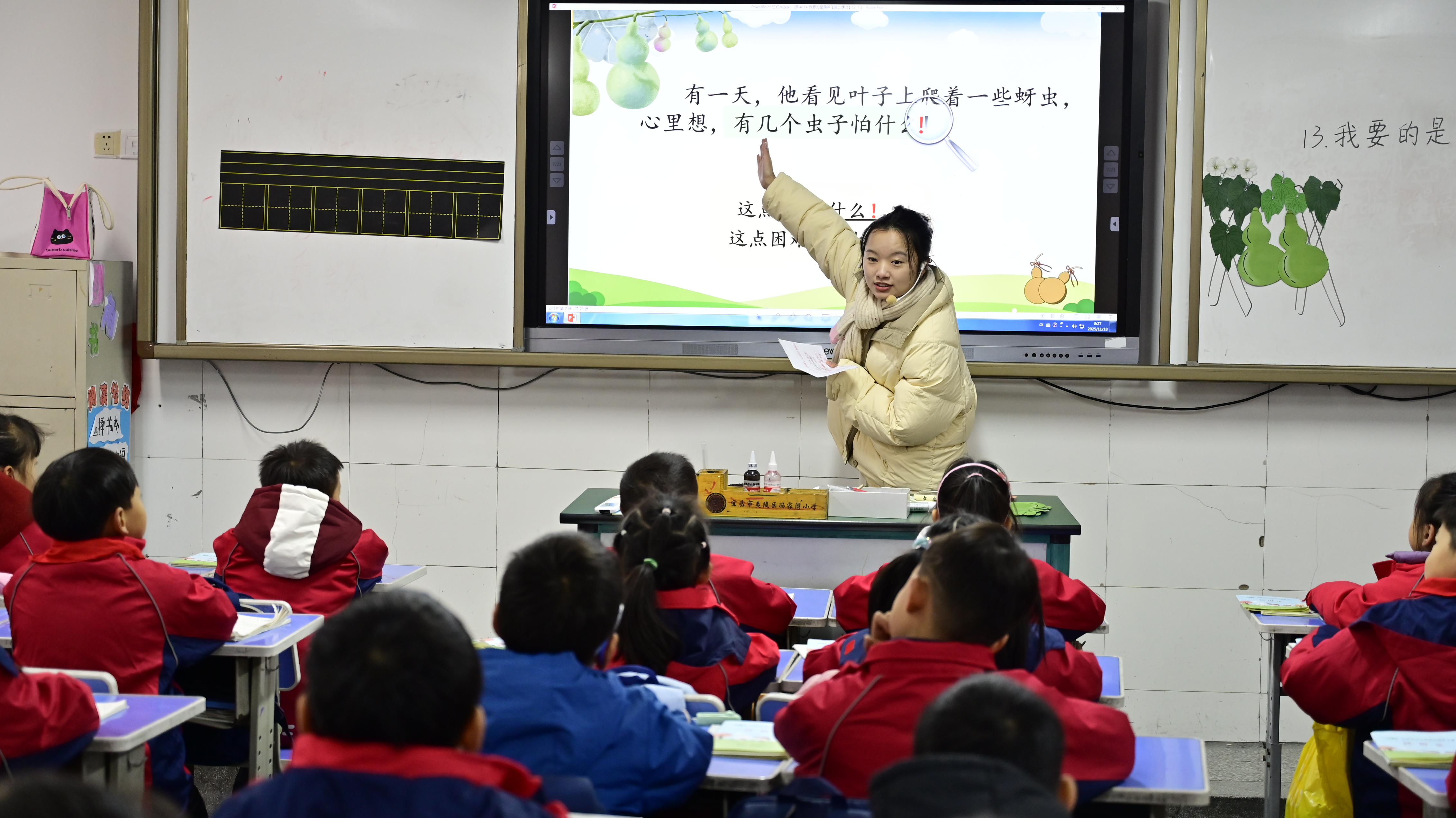 冯家湾小学马兰校区、黄柏河校区30余名语文教研组长及各年段教师代表参与活动。活动以“聚焦课堂实效,优化教学策略”为主题,呈现三节跨年段展示课:低年级《我要的是葫芦》结合学生认知设计趣味互动,中年段《爬天都峰》侧重阅读理解能力培养,高年级《夏天里的成长》引导学生深度思辨,充分展现教联体教师的教学功底与专业风采。