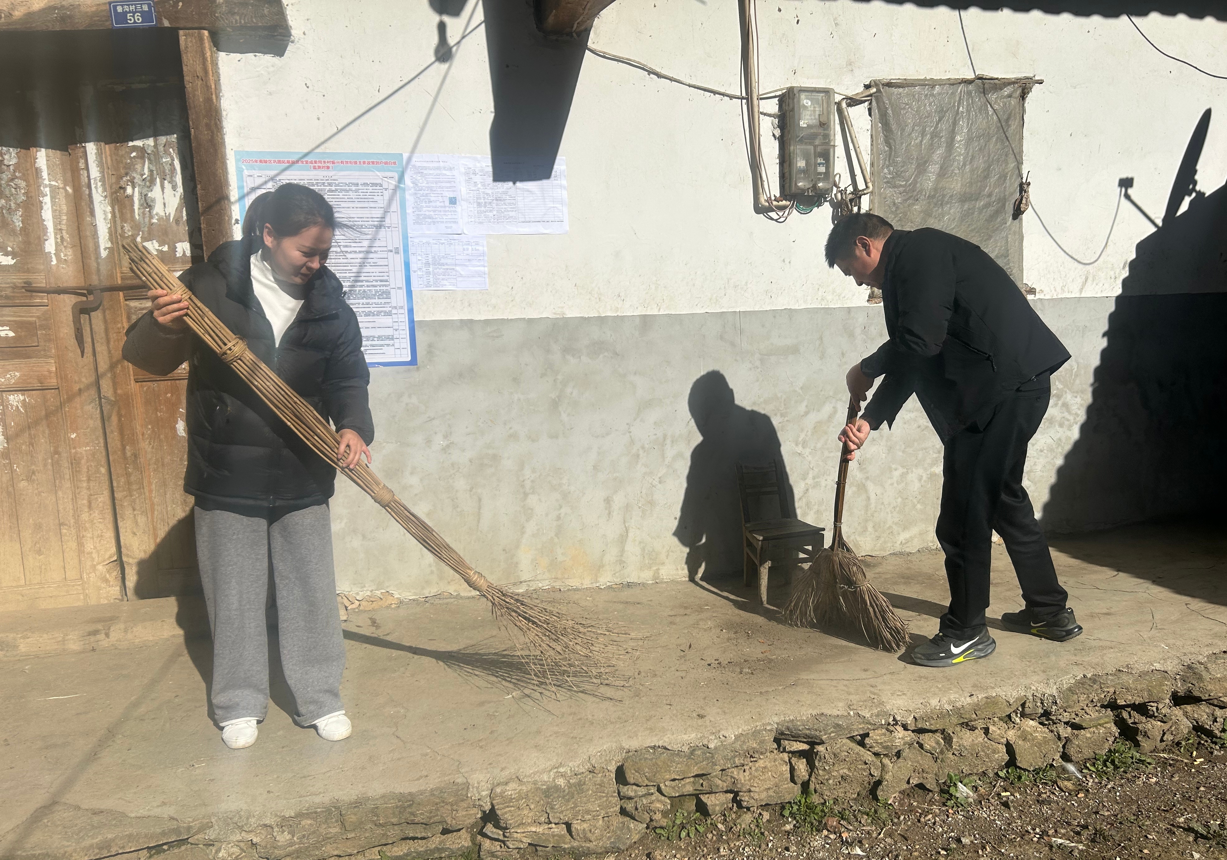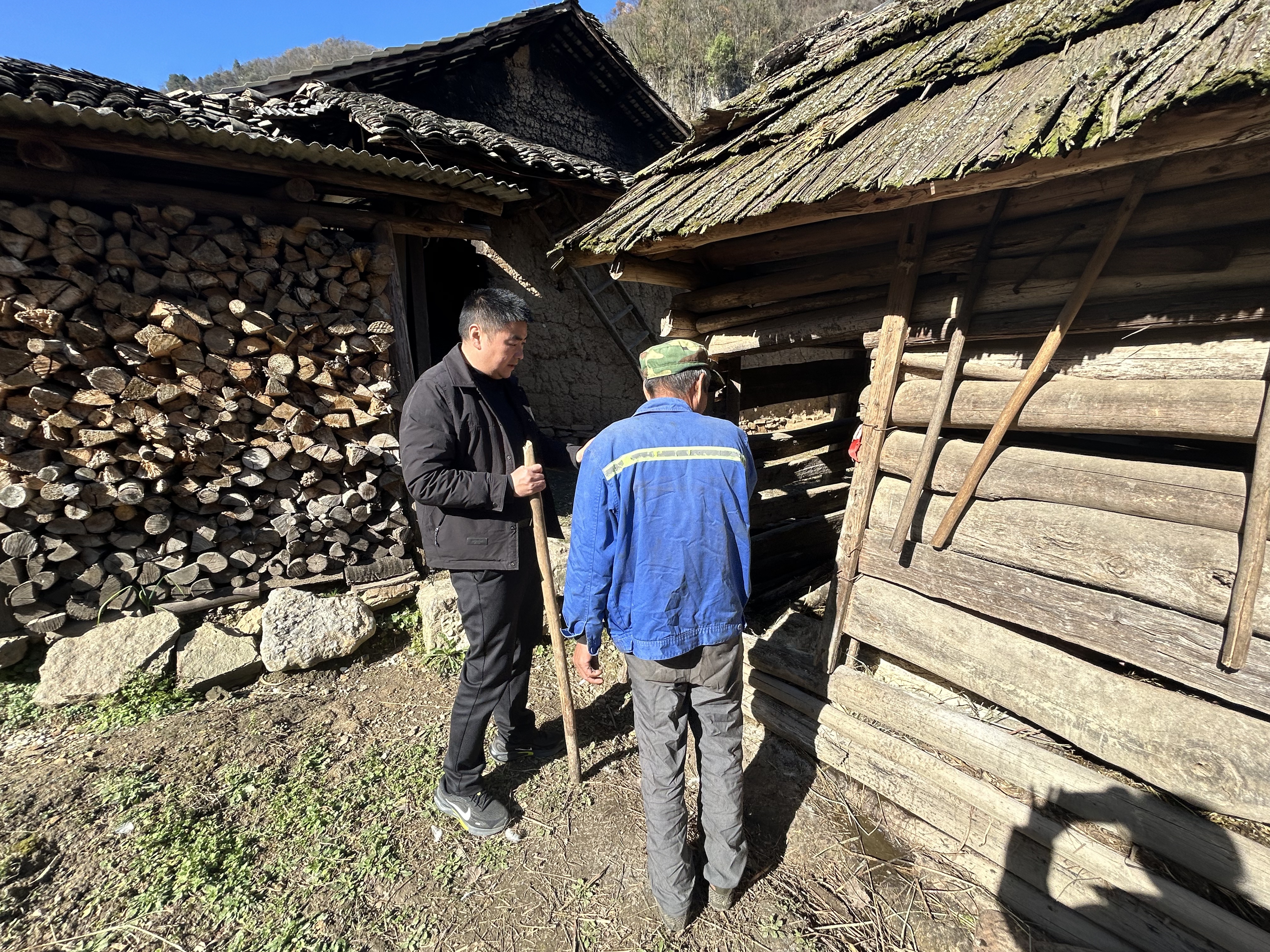 艾某与父亲相依为命多年,88岁的父亲因病离世后,不愿搬迁的他便独自生活在深山之中。由于居住地点偏远、交通不便,日常起居和生活物资采购成了艾某面临的实际难题。“特殊群体的冷暖是乡村治理的‘晴雨表’,再远的路也要走到,再小的事也要办好。”冯谦的话道出了村“两委”班子的共同心声。沿着蜿蜒的山路跋涉近2小时后,他们终于抵达艾某家中。没有多余的寒暄,拿起扫帚、抹布,清理屋内外杂物;仔细检查家中水电设施、猪圈、柴火;将生活物资妥善安置,并反复叮嘱艾某注意用火用电安全。