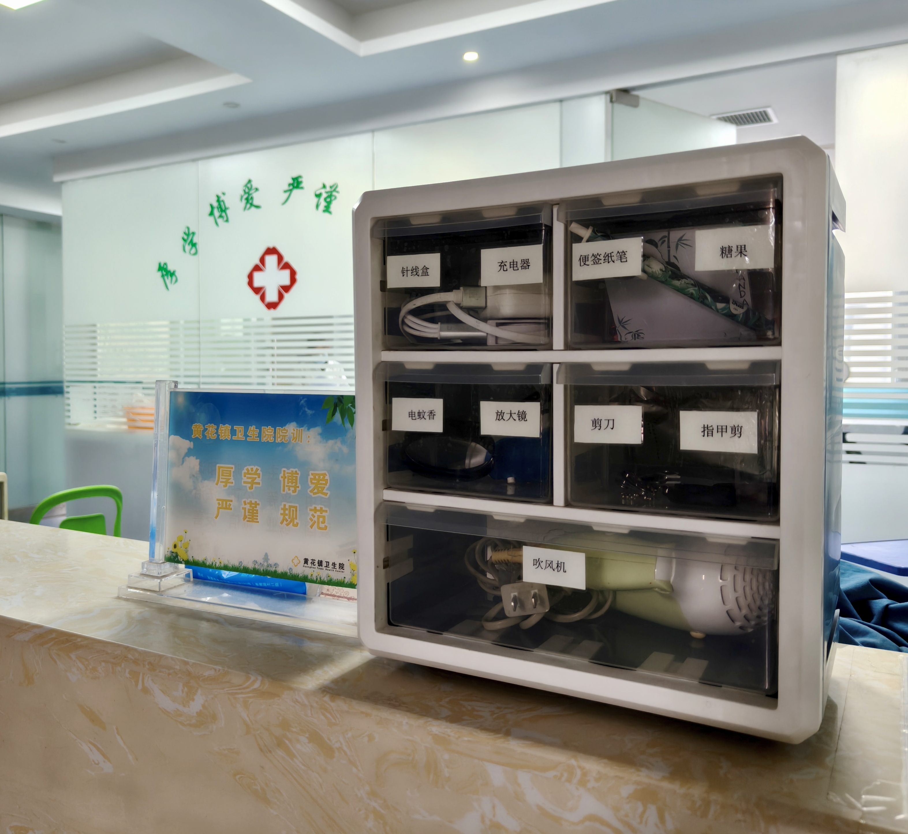 为解决患者日常生活中的零星需求,护理团队在病区护士站旁设置了“小小便民箱”。箱体虽小,却五脏俱全,不仅备有老花镜、纸笔等方便老年患者的物品,还贴心地准备了手机充电线、指甲剪、针线包乃至电吹风等应急用品,并由专人定期维护补充,确保物品洁净可用。这一举措让患者及家属无需再为琐事烦心,感受到了无微不至的关怀。