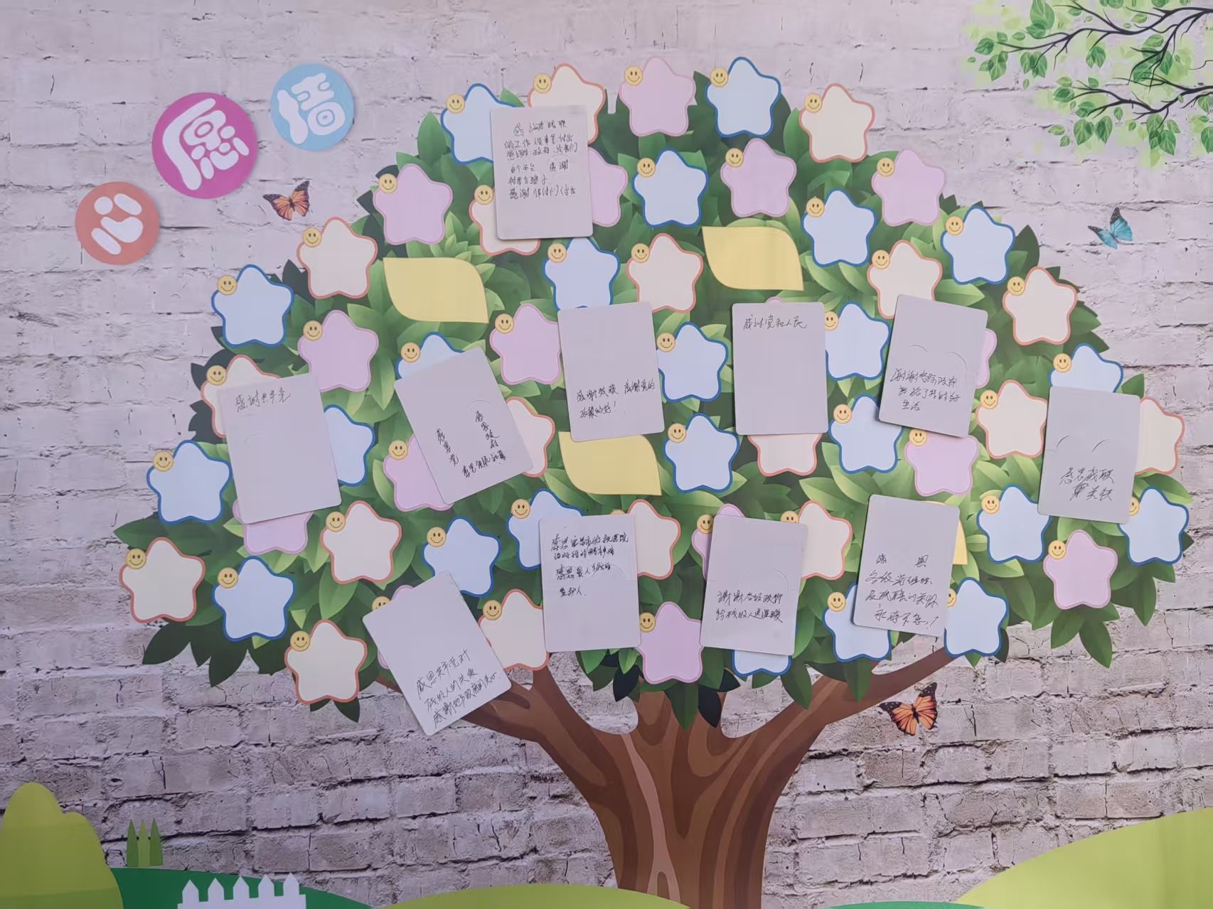 活动在“击鼓传花说感谢”环节中拉开序幕,大家在轻松愉悦的氛围中传递祝福、表达谢意。随后,舒缓心灵的丝竹表演、活力满满的“快乐拍拍操”,以及充满创意的手工毛毡包制作,不仅调动了大家的参与热情,也带来了满满的成就感与欢声笑语。“心声树洞”便利贴墙上,参与者纷纷写下对家人、社会以及自己的感恩话语,汇聚成一片温暖真挚的情感海洋。
