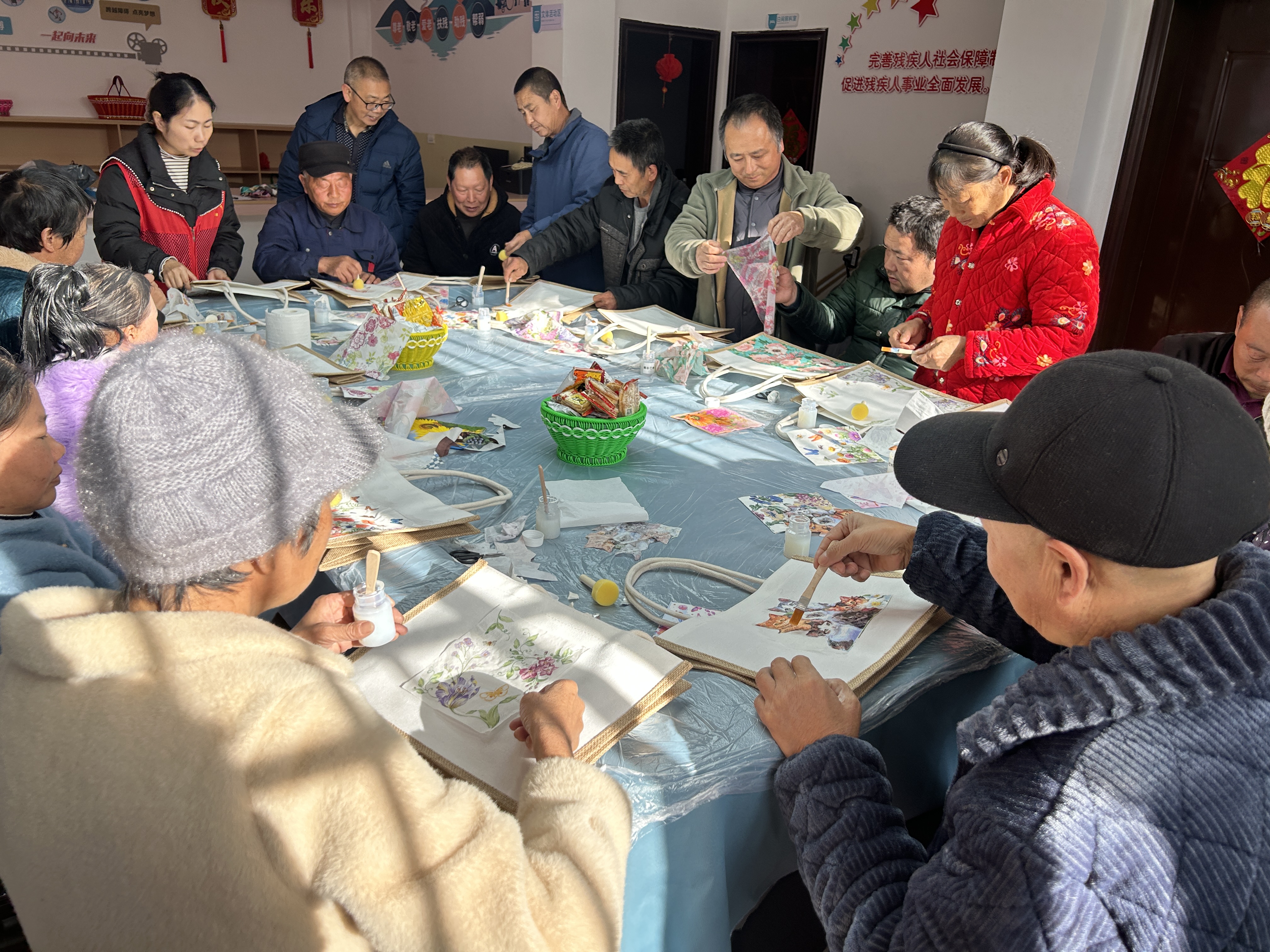 11月26日,一场以“指尖寄感恩,‘袋’爱暖寒冬”为主题的蝶古巴特手工袋DIY活动在雾渡河镇小庙村楚天舒阳光家园温馨开启。活动通过创意手工,为残障朋友搭建一个互动交流的平台,提升动手能力与社会参与感。
