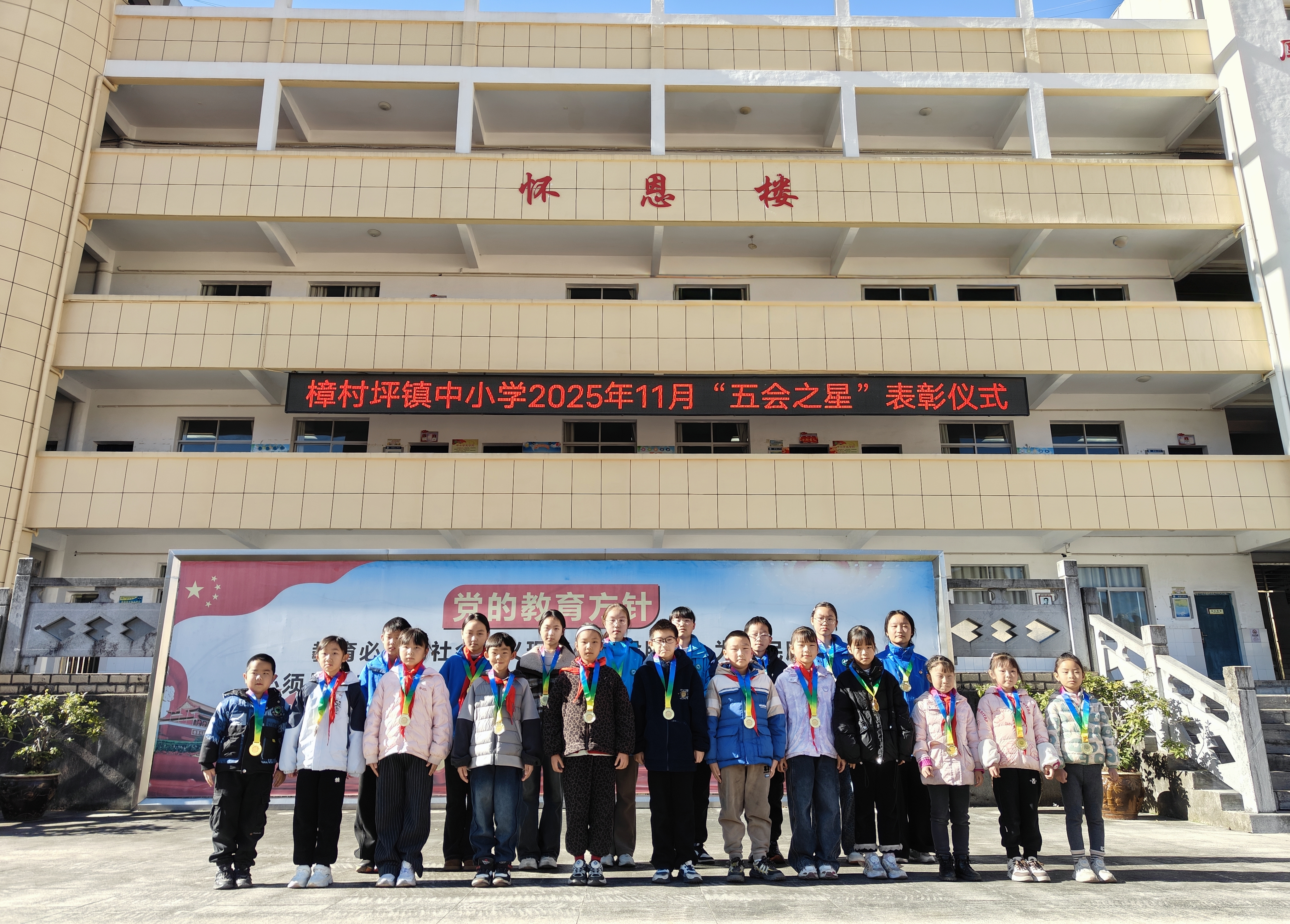 11月28日,樟村坪镇中小学举行“新时代好少年”及“五会之星”颁奖仪式,20个班级共122名同学获此殊荣。