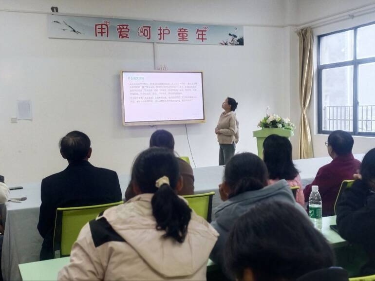 11月28日上午,三斗坪镇卫生院公卫科医护人员走进辖区幼儿园,面向幼儿家长开展艾滋病防治专题讲座。