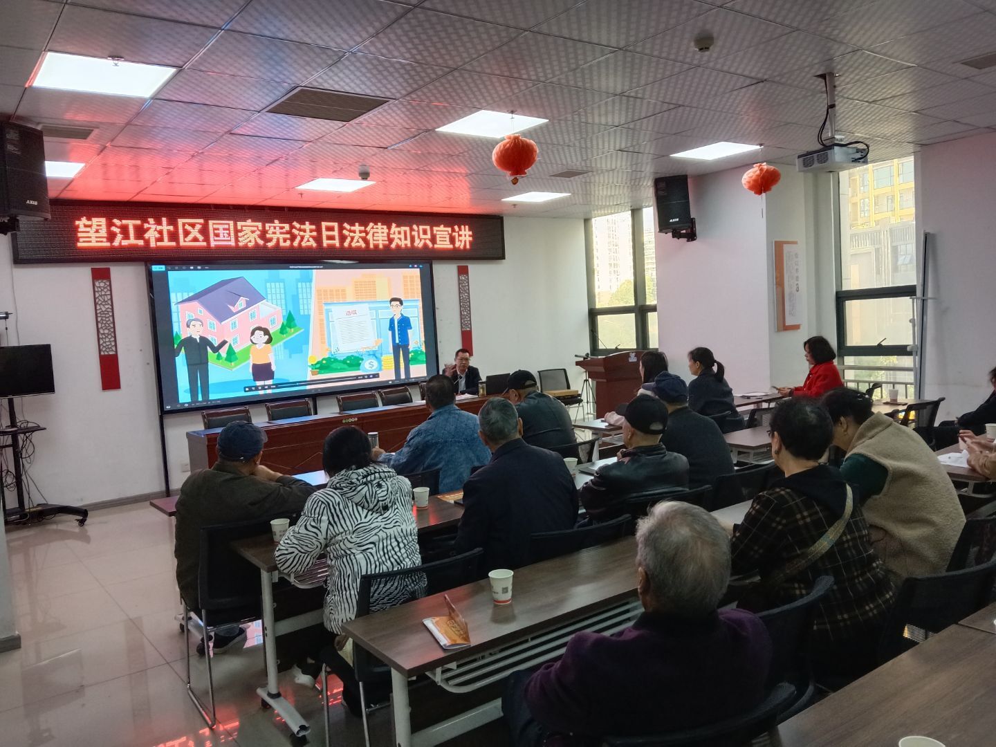近日,望江社区开展“国家宪法日”专题宣讲活动。律师黄亮结合案例,用通俗语言讲解了宪法与公民权利、义务的相关知识,并现场为居民答疑解惑。现场互动踊跃,气氛热烈。此次活动有效增强了居民的法律意识,营造了尊法学法守法用法的良好社区氛围。