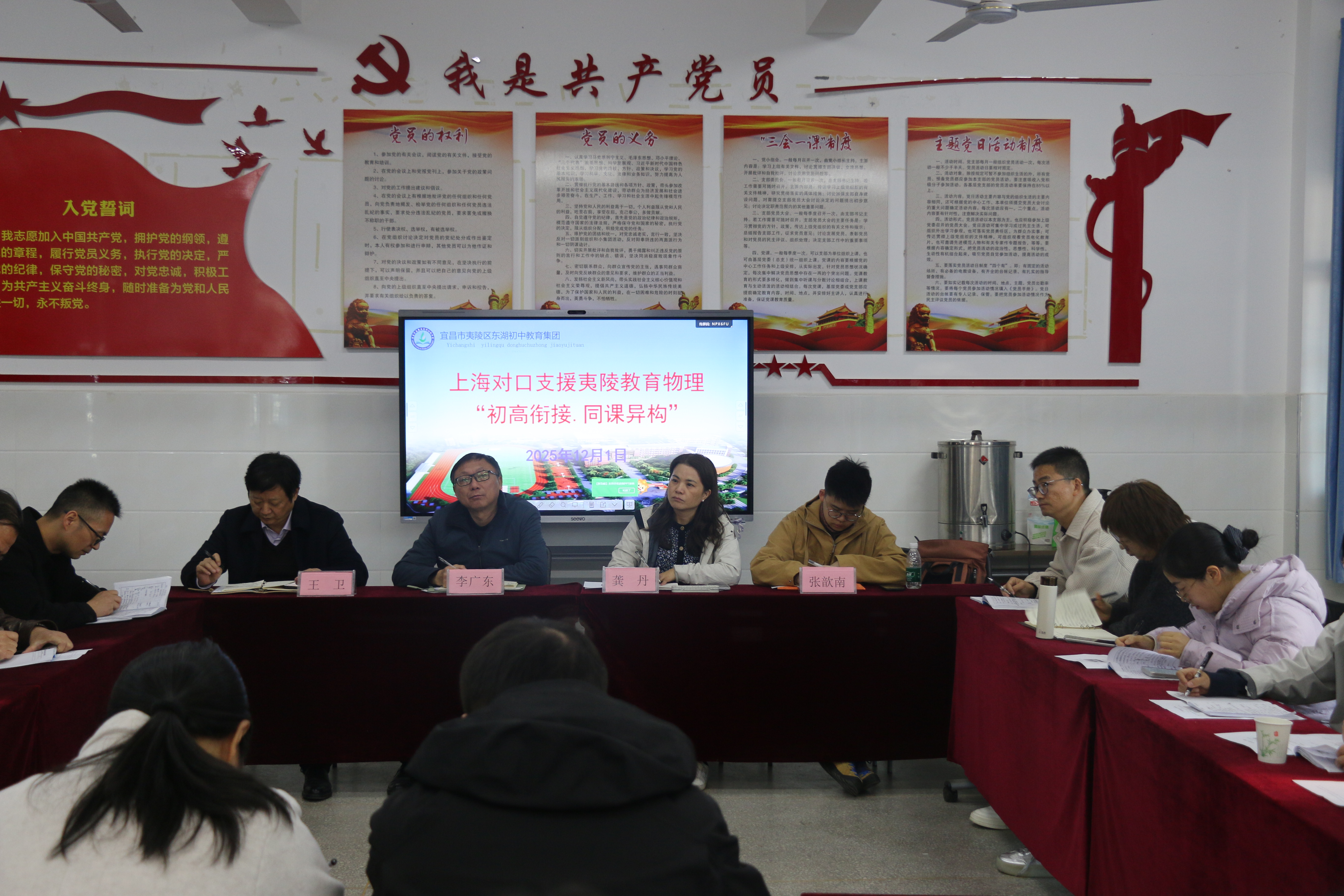 12月1日,上海静安对口支援夷陵教育“初高衔接 同课异构”物理学科研讨活动在东湖初中进行,区教科院院长李广东、物理教研员王卫和城区初中物理教师参加活动。