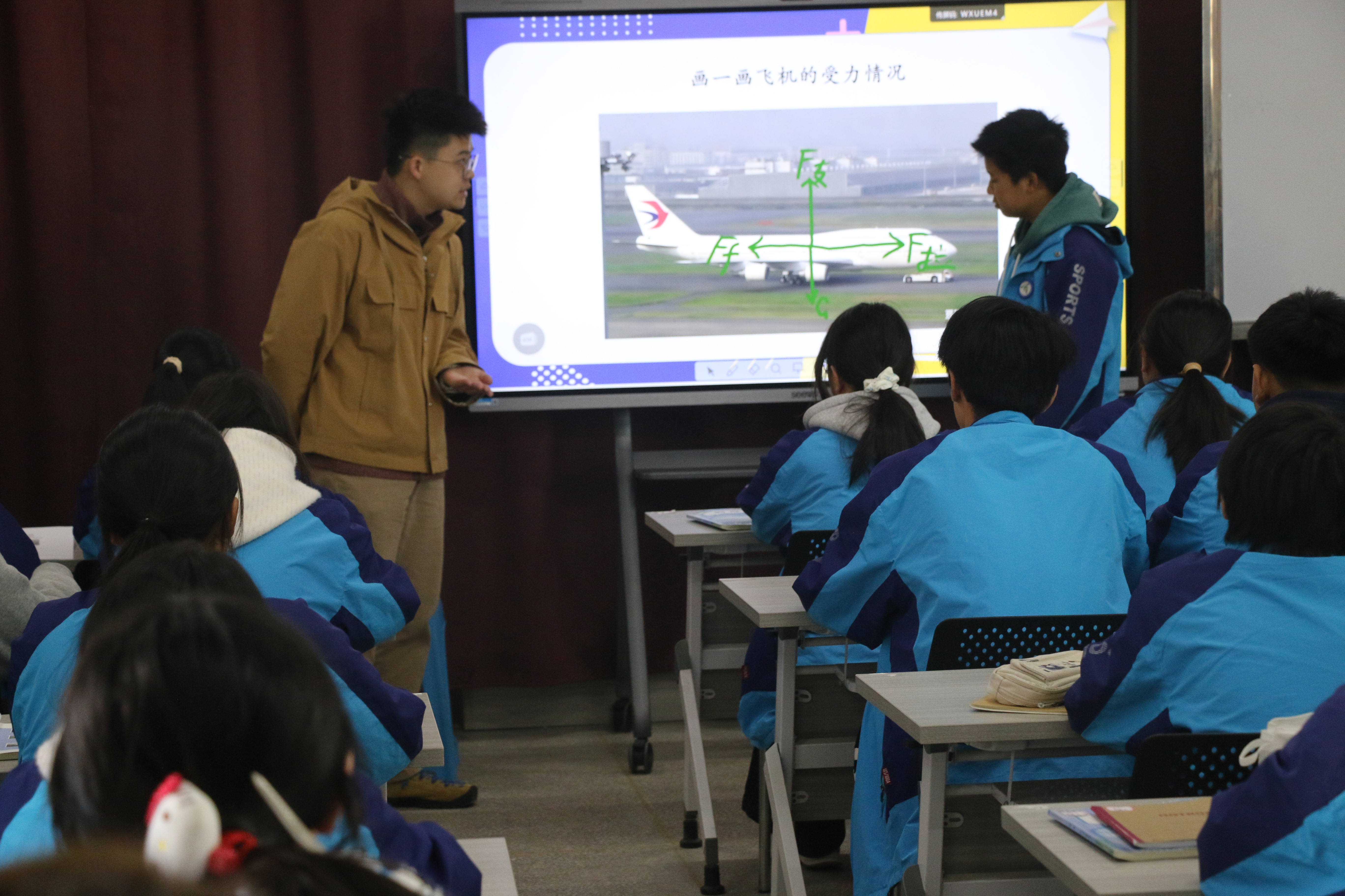 此次研讨以力学复习课为统一课题,东湖初中青年教师周沛以国球乒乓球为主线展开教学,设计各类有趣的实验探究和小组讨论。课堂上,学生们在动手实验中复习回顾力学相关知识,在小组讨论中梳理力学知识体系,原本枯燥的复习课变得生动鲜活。上海市市西初中教师张歆南以“力学知识的逻辑建构”为核心设计课堂。他创设牵引车拉飞机的情境,层层递进,引导学生从“解题”走向“悟理”,并结合初高中衔接要点,在习题讲解中渗透高中物理学习的思维方法,让学生在梳理力学框架的同时,也触摸到了物理学科的逻辑之美。