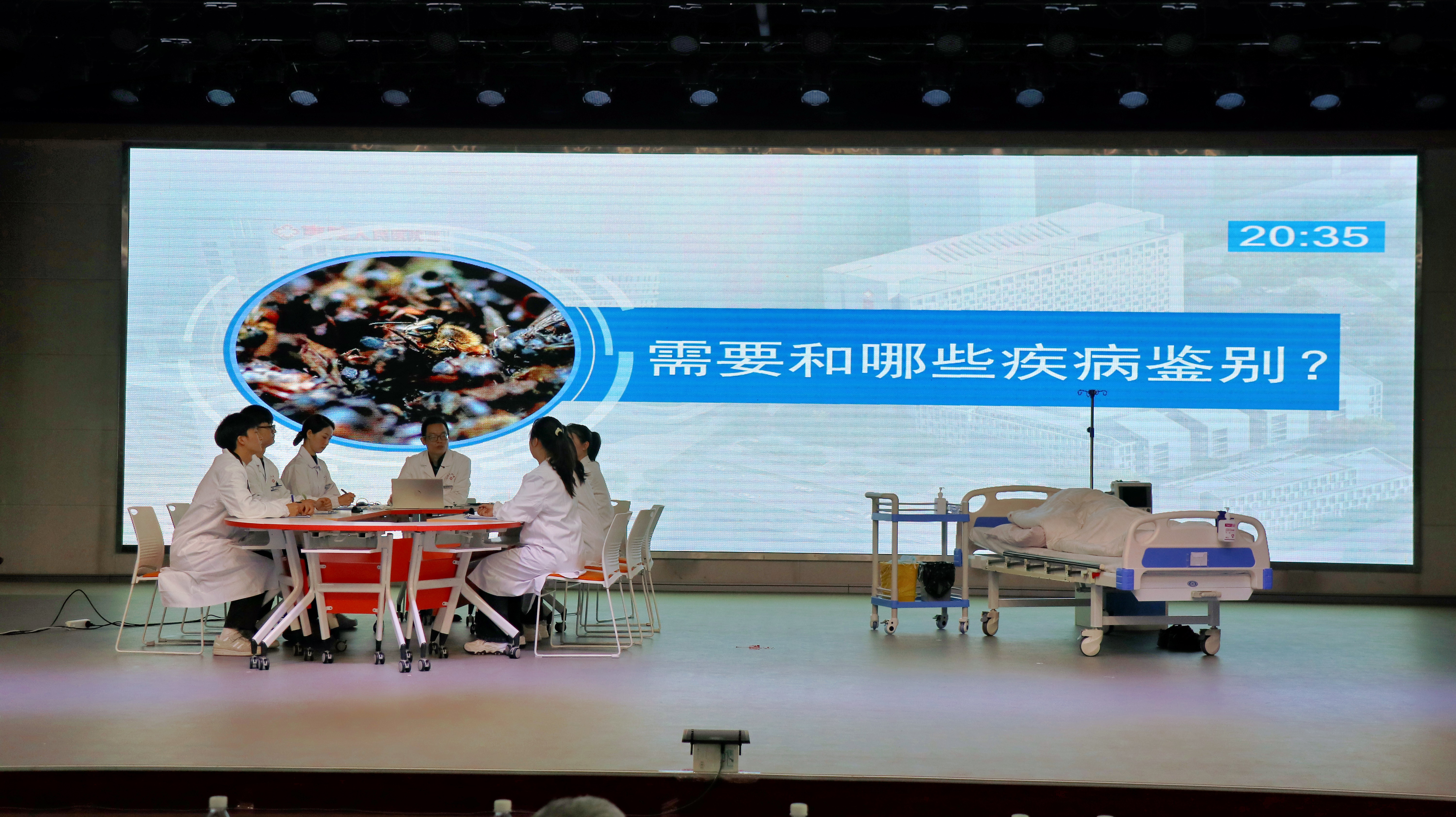 备赛期间,团队成员凝心聚力、精益求精,从病例筛选、教学方案设计,到流程打磨、细节完善,每一处都反复推敲、不断优化。竞赛现场,主讲教师以一段精心设计的情境提问导入,迅速抓住了全体学员的注意力;在核心讨论阶段,团队巧妙设问,环环相扣,引导学员从病史特点抽丝剥茧,到鉴别诊断激烈思辨,再到治疗方案的循证抉择;面对学员的疑惑与临场生成的新问题,他们不仅从容解答,更善于启发,将一场单向讲授转化为活跃的探究式课堂。整个过程团队成员配合默契,沉稳应战,最终凭借出色的表现赢得了评委的高度认可。