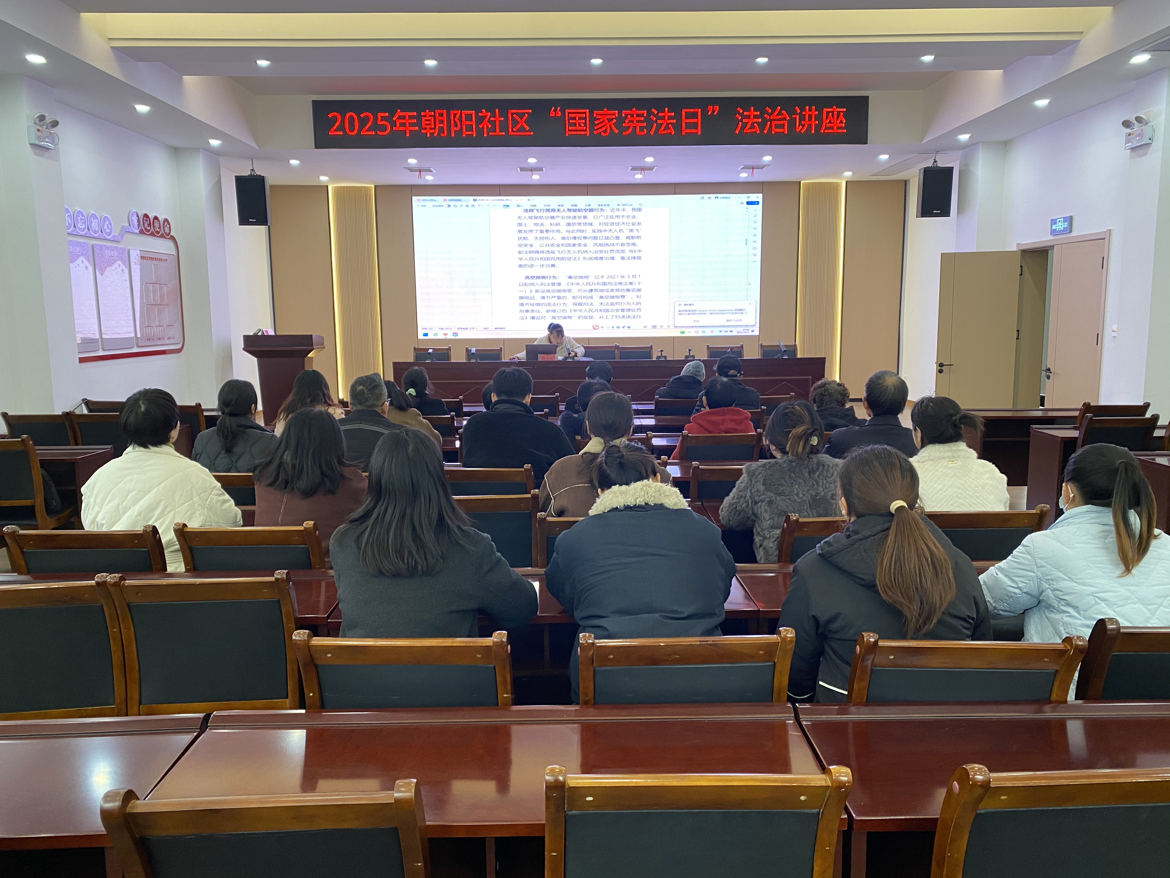 12月4日国家宪法日,小溪塔街道朝阳社区邀请社区法律顾问周律师为辖区居民开展了一场贴近生活的法律讲座,详细解读了新修订的《中华人民共和国治安管理处罚法》,让辖区居民了解这部法律的新变化。