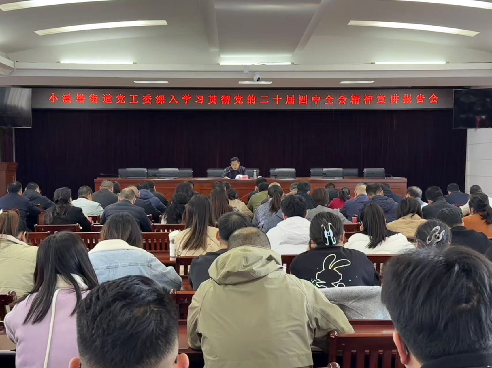 12月5日,小溪塔街道举行学习贯彻党的二十届四中全会精神宣讲报告会。夷陵区委宣讲团成员、小溪塔街道党工委书记万平作专题宣讲报告。街道全体机关干部、各村(居)党组织书记、各直属单位负责人参加学习。