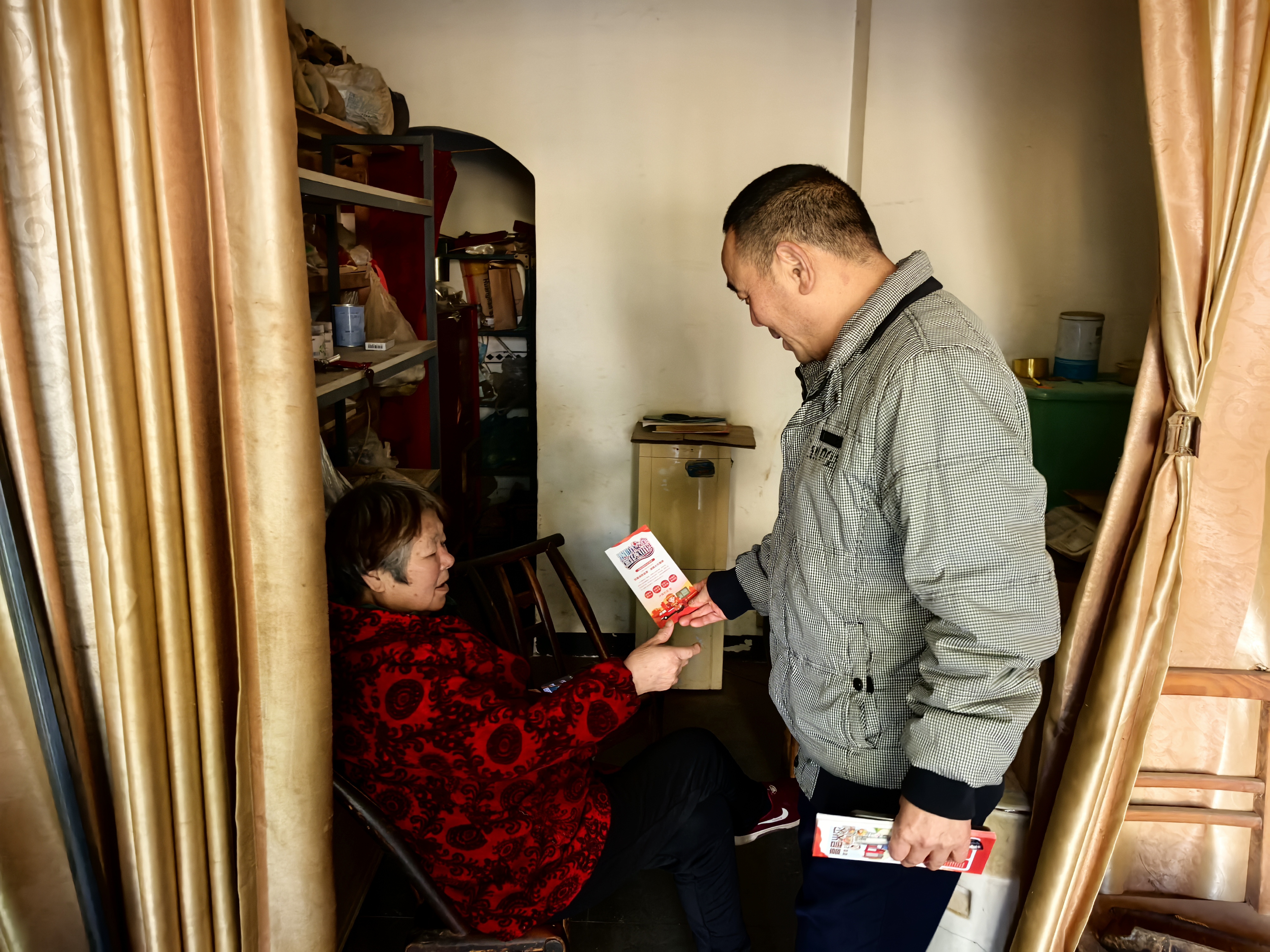 工作人员深入老年居民家中,与老人亲切交谈并询问用火、用电、用气情况,将图文并茂的宣传册送到老人手中。工作人员逐字逐句讲解冬季取暖规范、燃气检查、电动自行车安全充电等要点,提醒切勿私拉乱接电线,离家前关闭“三源”。