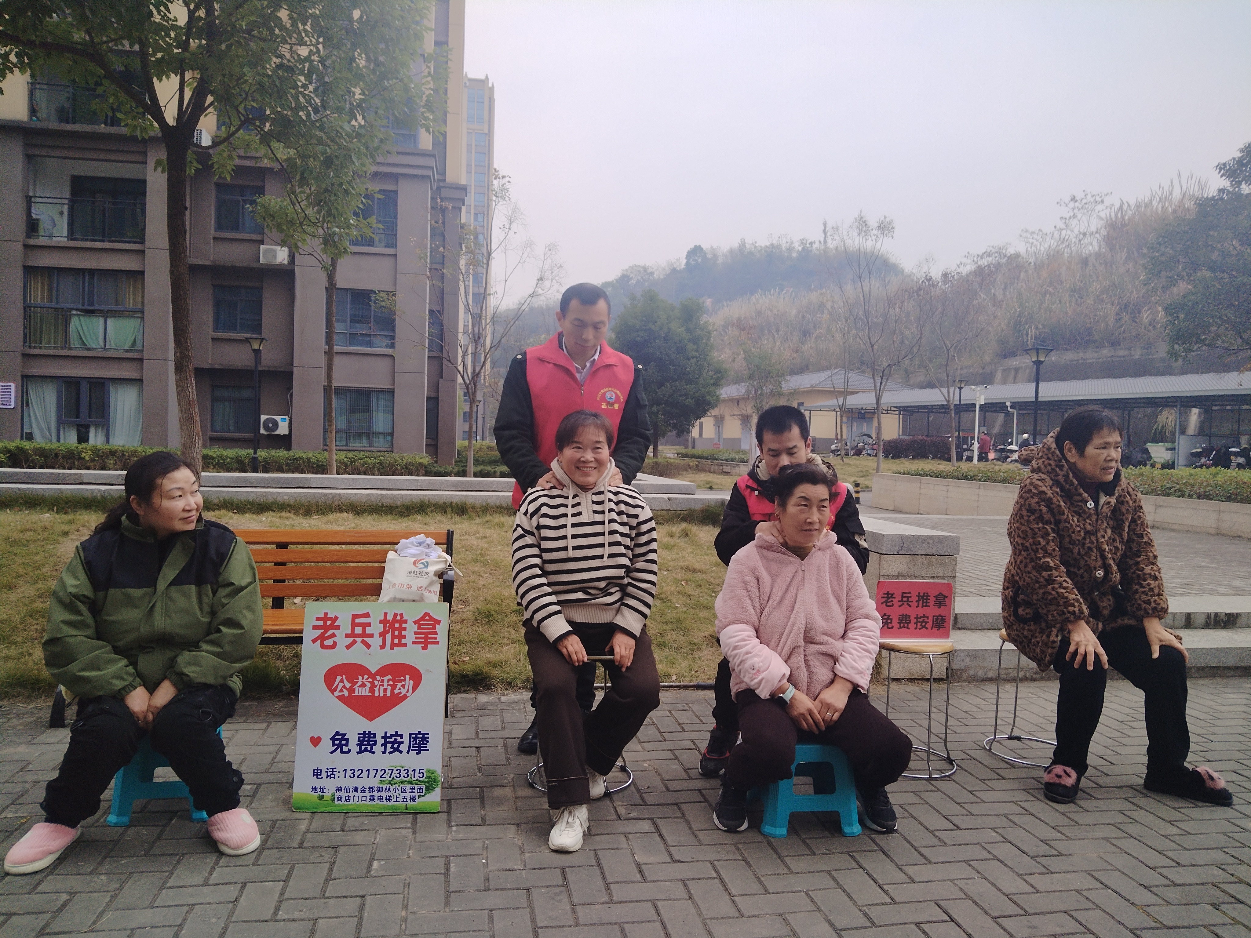 12月10日,小溪塔街道冯家湾社区与平湖绿岛小区金亚物业公司联合举办便民服务日活动,为居民提供免费磨菜刀、洗地毯、剪发及老兵专属按摩服务。