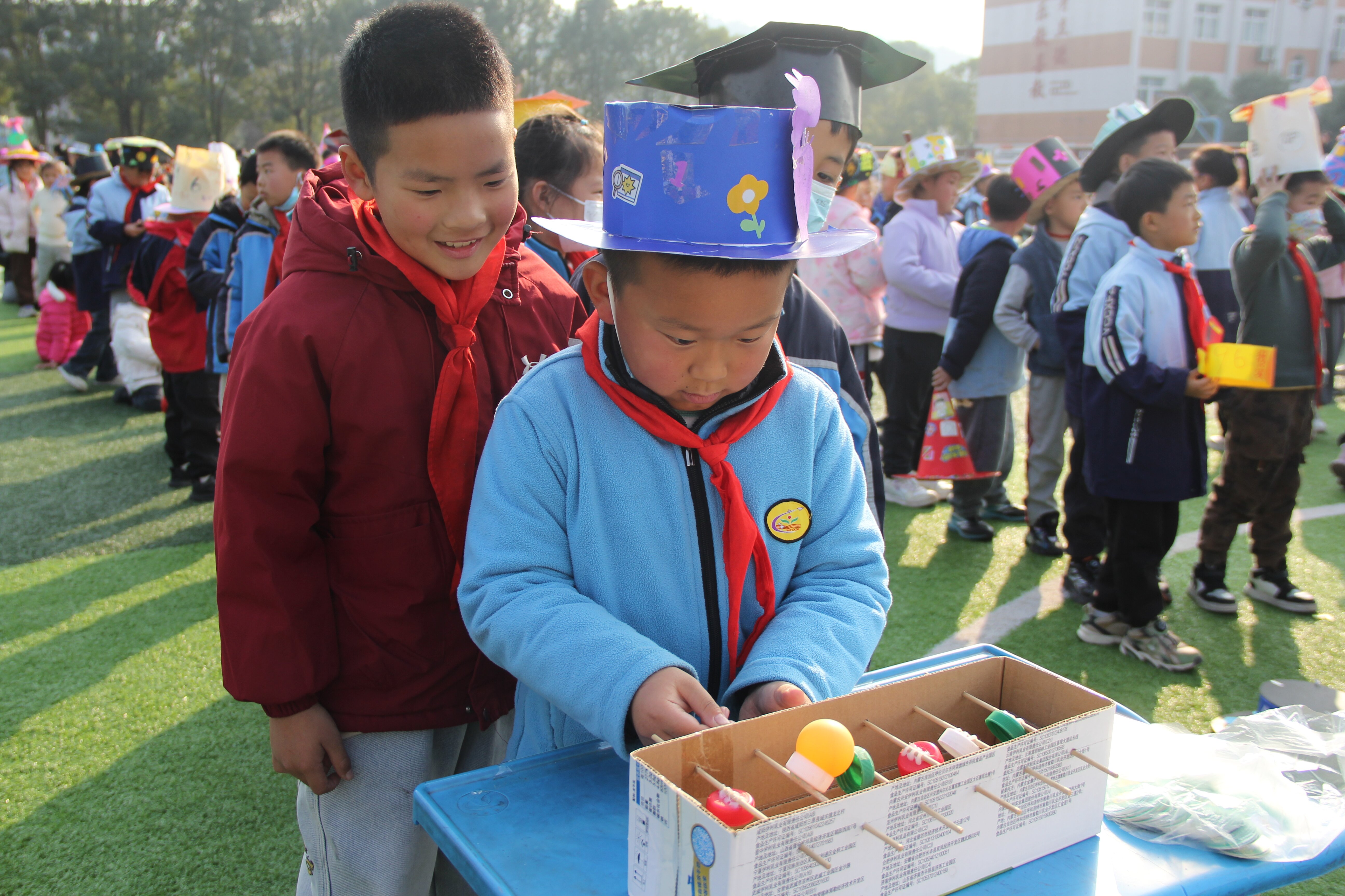 活动内容丰富多彩,既有紧张激烈的校级数独竞赛与桥梁设计大赛,还设置了分年级趣味游园。一至三年级学生通过“跳格子”“七巧板拼图”“摸盲盒认图形”等游戏,在玩乐中感知图形与空间。四至六年级学生则挑战“巧算二十四点”“汉诺塔”“智走华容道”以及“玩转魔方”等,在竞技中锻炼逻辑与运算能力。学生们头戴亲手制作的创意数学帽,穿梭于各个互动专区,或凝神思考,或欢呼雀跃,用智慧赢得奖币。场边,各年级精心设计的数学展板,汇集了创意绘画、数学小报与思维导图,生动展现了同学们的数学想象与学习成果。