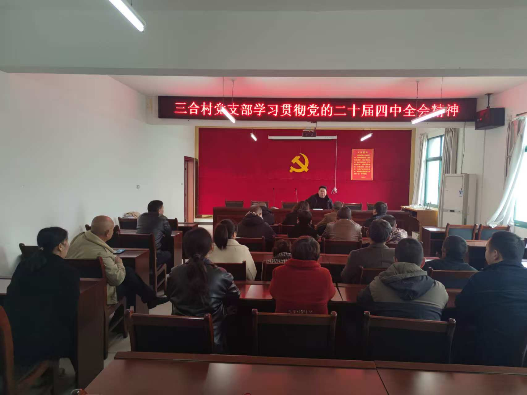 近日,鸦鹊岭镇三合村党支部组织全体党员集中学习党的二十届四中全会精神,引导全体党员切实把思想和行动统一到党中央决策部署上来。