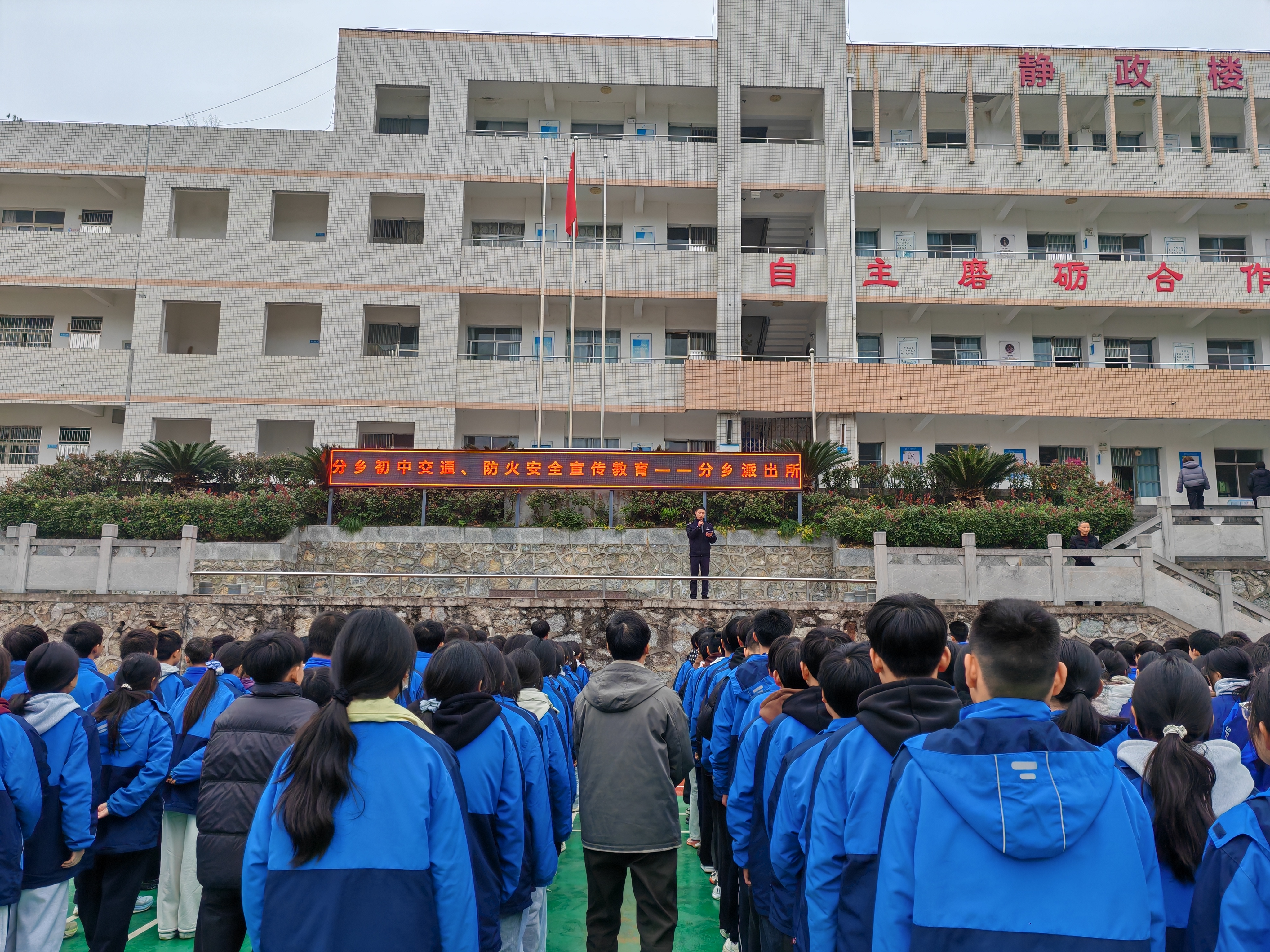 为切实强化冬季校园安全管理,提升学生安全防范意识与自我保护能力,12月22日,分乡初中联合镇派出所民警开展冬季安全教育专题讲座,将安全防护知识精准传递至每一位学生心中。