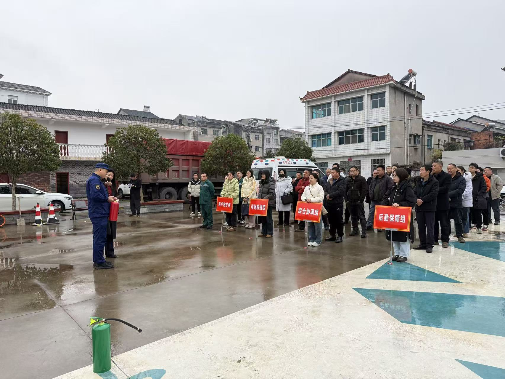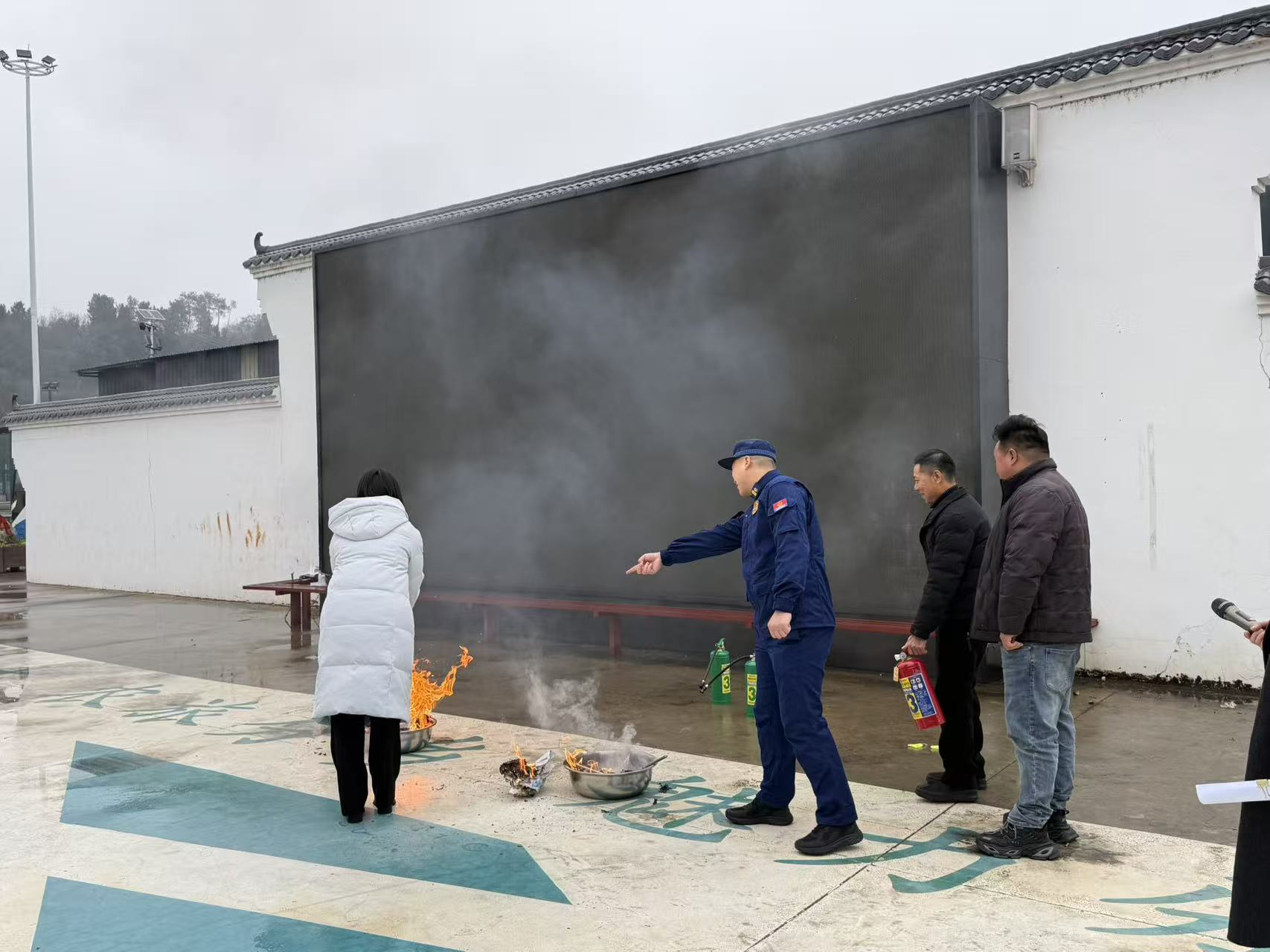 演练模拟了突发火灾使用灭火器扑救及人员被困畜禽化粪池两类紧急情况。区消防大队教官详细介绍了各类常见火情及相应处置方法,并讲解了各类灭火器的正确使用方式。随后,通过在铁桶中点燃预先准备的可燃物,指导参训人员实际操作灭火器进行灭火。同时模拟人员掉落畜禽化粪池的场景,演示了通风、检测、施救等抢险操作,在专业救援小组的协助下,展示了复杂危险环境下的应急处理流程。各环节紧密衔接,有效检验了应急预案的科学性与可操作性。