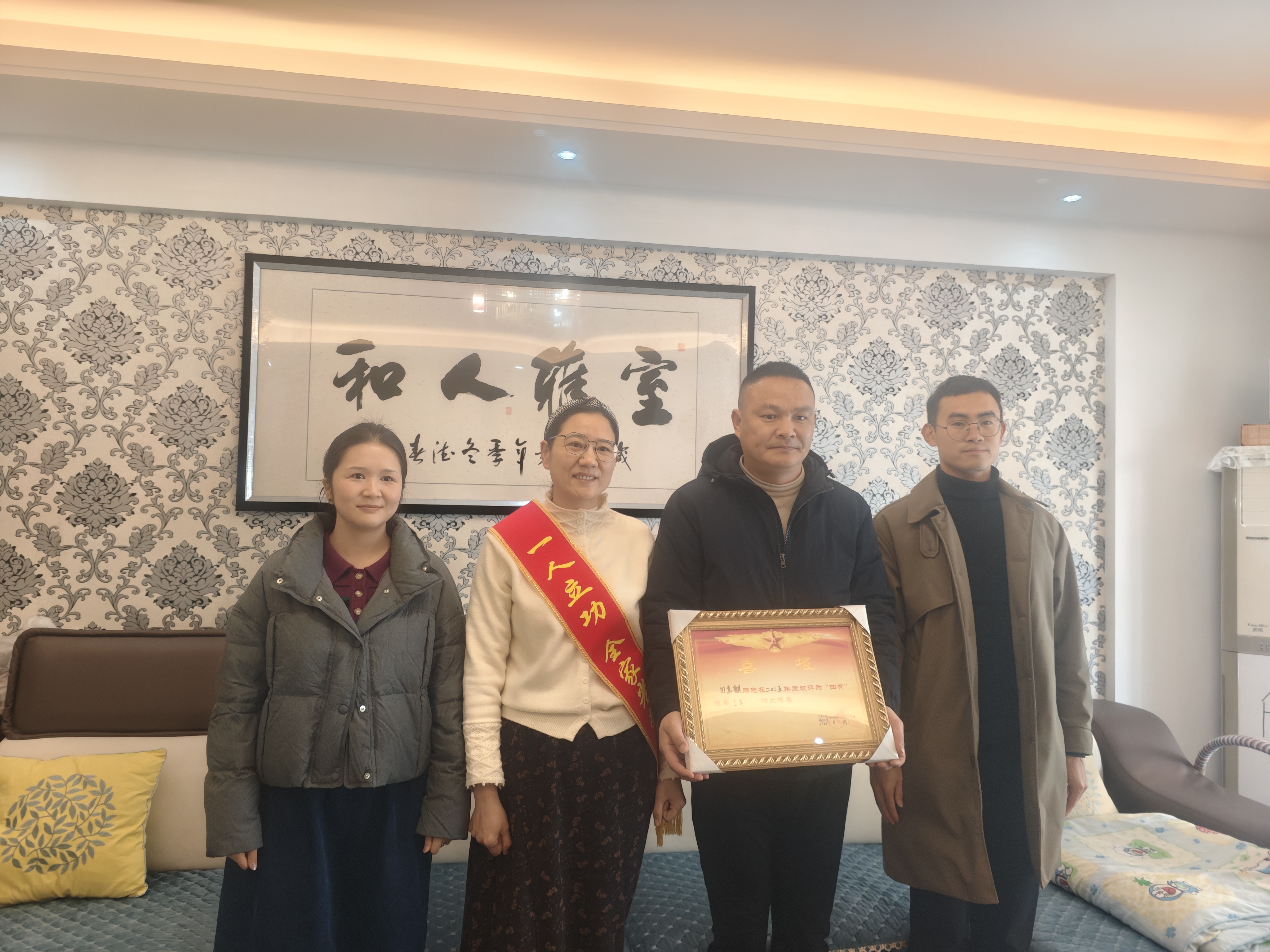 12月25日,小溪塔街道办事处联合港虹社区为荣获2025年度“四有”优秀士兵称号的田嘉麟送去喜报。