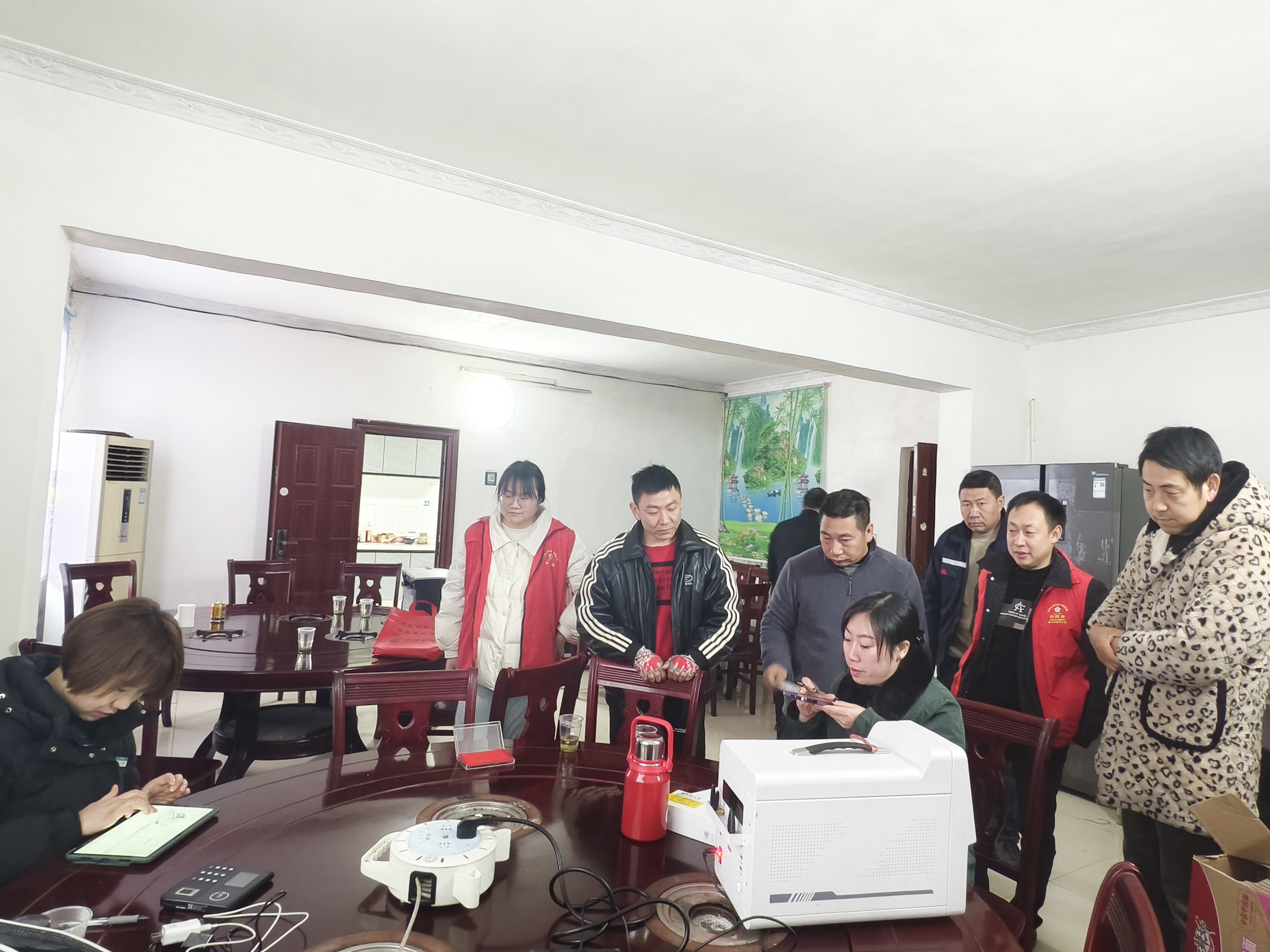 黄家台村村民居住分散、老年群体占比高,以往办卡耗时费力。村“两委”主动作为,积极对接镇社会事务办,提前梳理名单、做好宣传通知,协调邮政工作人员携设备到村服务。