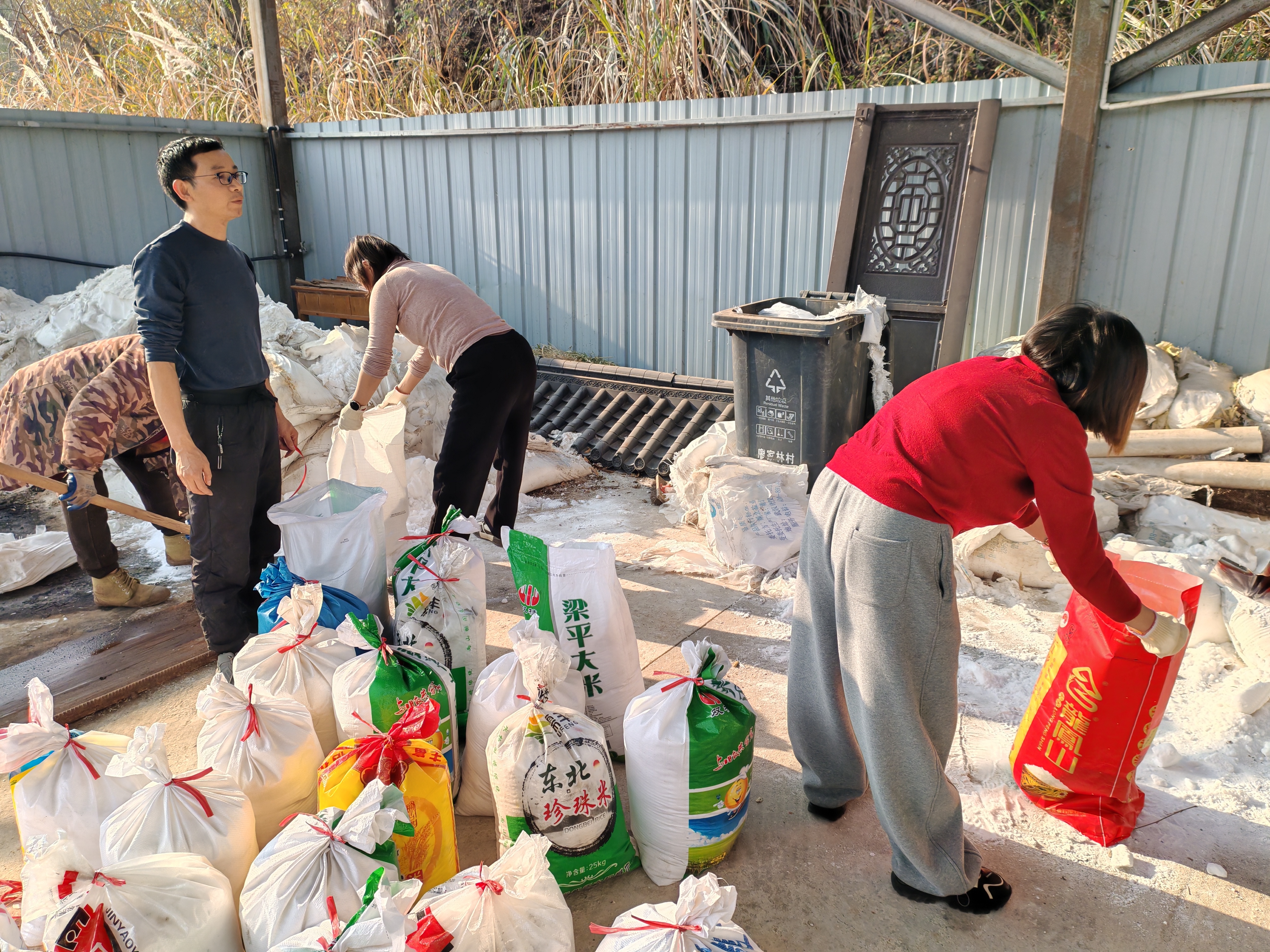 在收到气象部门寒潮预警后,村委会细化应急预案,明确责任分工。工作人员提前备足融雪剂,进行分袋包装,运输至各风险路段定点存放,并就近安排信息员及时预警。