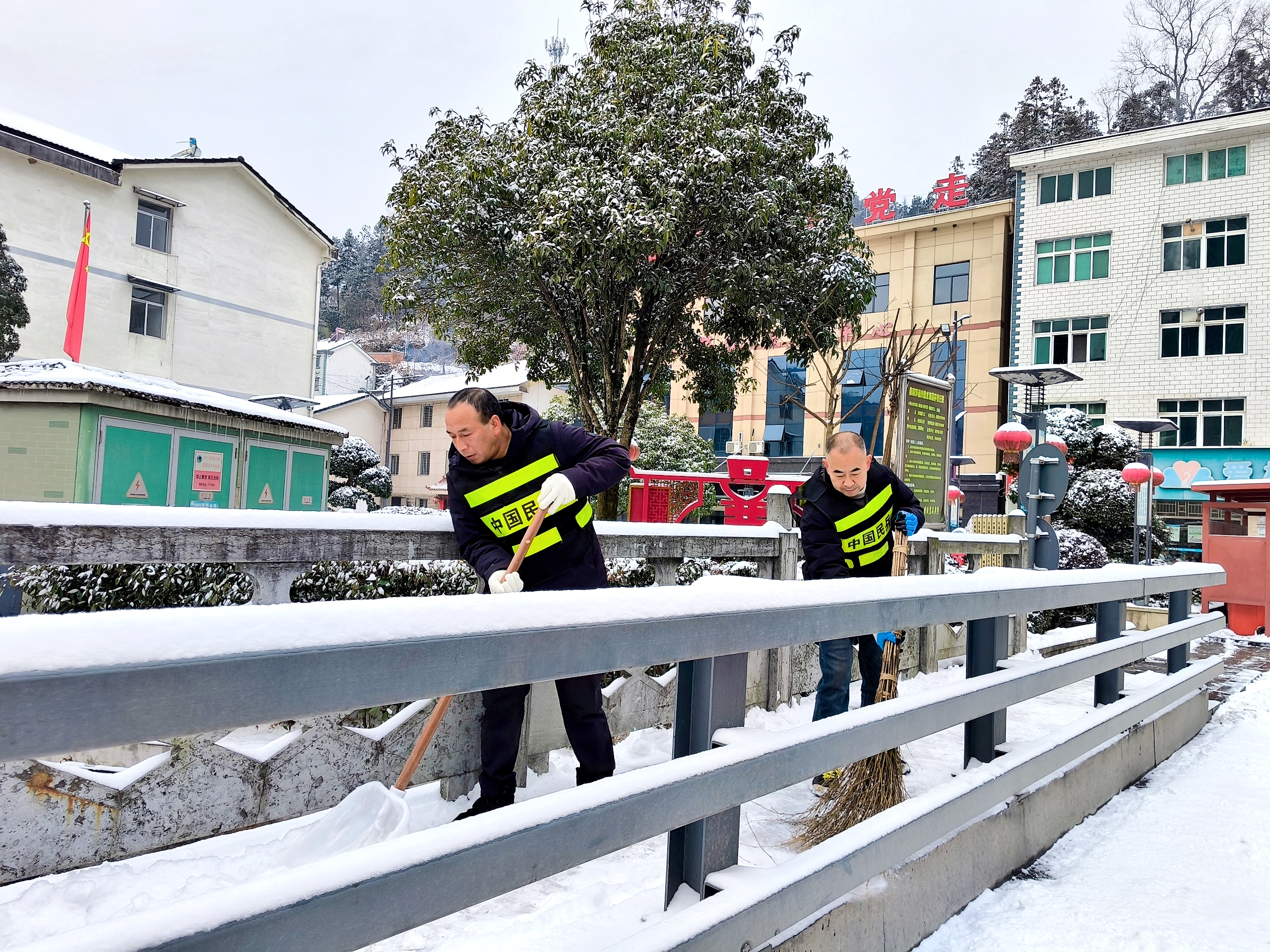 1月19日,樟村坪镇遭遇剧烈降温,迎来强降雪天气。积雪给道路交通和居民出行带来极大不便,为保障辖区道路安全畅通及居民正常生产生活秩序,樟村坪镇樟村坪社区迅速响应、以雪为令,第一时间组织工作人员、党员及部分热心群众,对主次干道、昌达小区等重点区域开展除雪铲冰行动。