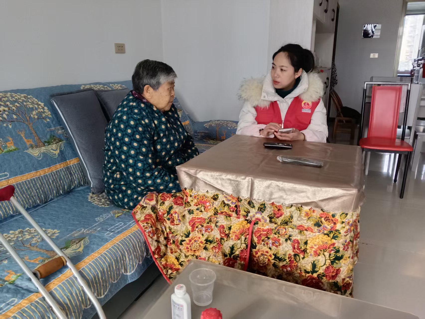 1月20日清晨,社区工作人员踏雪而行,深入辖区走访独居、高龄老人及困境家庭等特殊群体。每到一户,工作人员都与居民促膝谈心,详细询问身体状况与生活需求,并反复叮嘱留心安全。结合岁末年初诈骗高发特点,工作人员特意提醒老人:“遇到陌生电话说中奖或补贴,千万别轻信,捂紧自己的钱袋子。”他们还仔细检查家中取暖设备、燃气阀门与电路线路,排查一氧化碳中毒等安全隐患,确保居民居家安全。