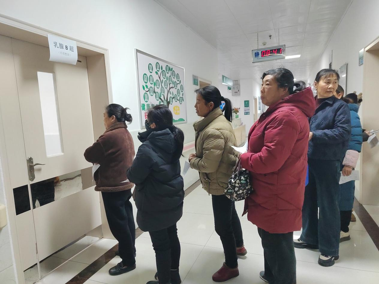 筛查前期,村委会通过微信群通知、入户走访告知等方式,广泛宣传筛查政策,明确筛查时间、流程及参检年龄范围,引导村内妇女积极参与。筛查现场,村干部分工配合,协助卫生院完成信息登记、现场秩序维护等工作,为行动不便的妇女提供全程帮助,让参检过程更便捷。医护人员细致开展宫颈、乳腺相关检查,并同步普及“两癌”早防早治和日常保健知识。
