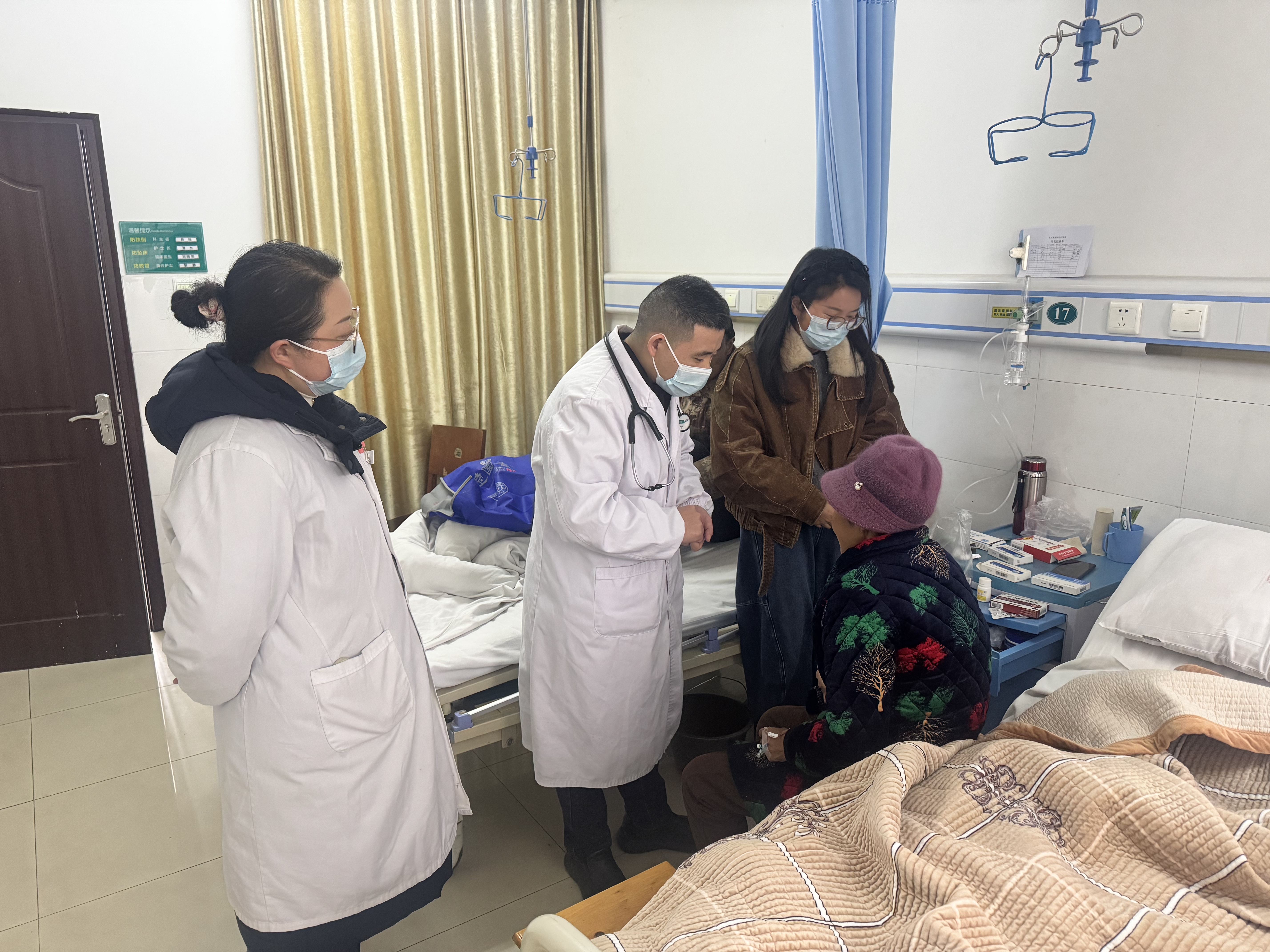 此次培训由医共体核心专家团队领衔授课,干货满满。急诊科谭扬主任结合基层急救场景,详解胸痛患者快速分诊流程与危险信号识别技巧,强调“时间就是心肌”的急救原则;神经内科徐海龙主任通过“中风120”口诀实操教学,让基层医护快速掌握面部不对称、肢体无力等卒中早期症状判断方法,同步讲解溶栓治疗的适应症与禁忌症;心内科覃发健主任则聚焦心梗溶栓关键窗口期,结合临床案例拆解给药规范与术后监护要点,助力基层精准开展急救处置。培训结束,专家们深入病房开展查房指导。