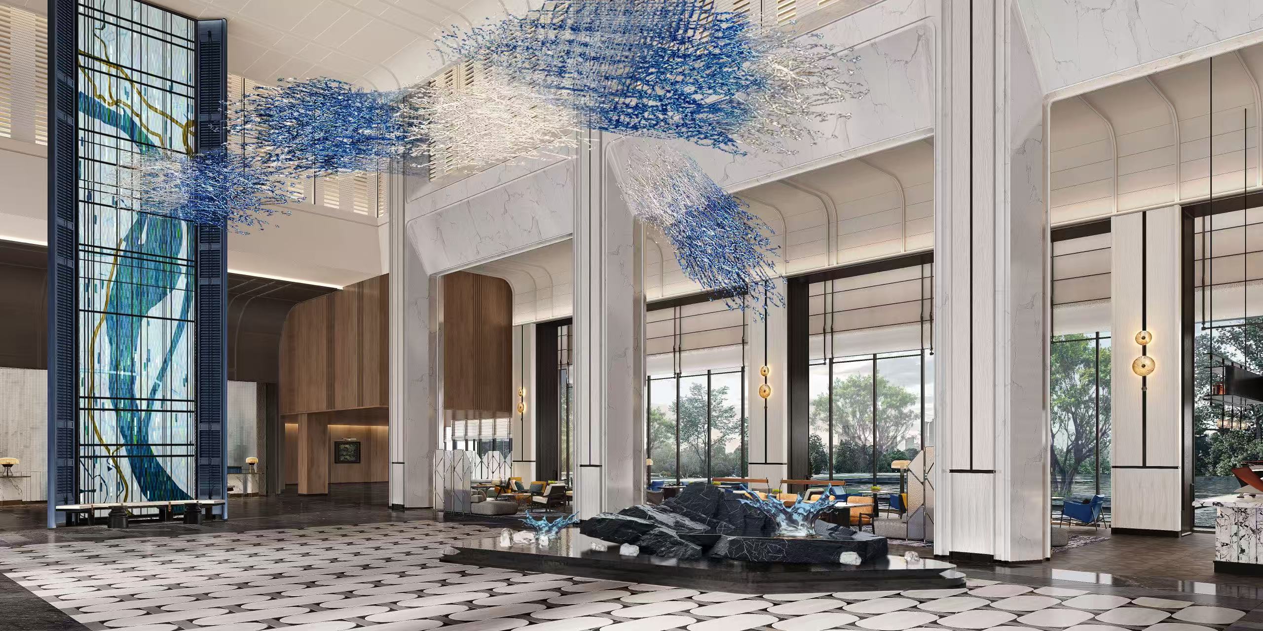 宜昌三峡艾美酒店总经理李楠介绍,“目前主体软装已完成90%,公共区域的石材铺装、墙面造型都已基本完工。各项收尾工作正稳步推进。”