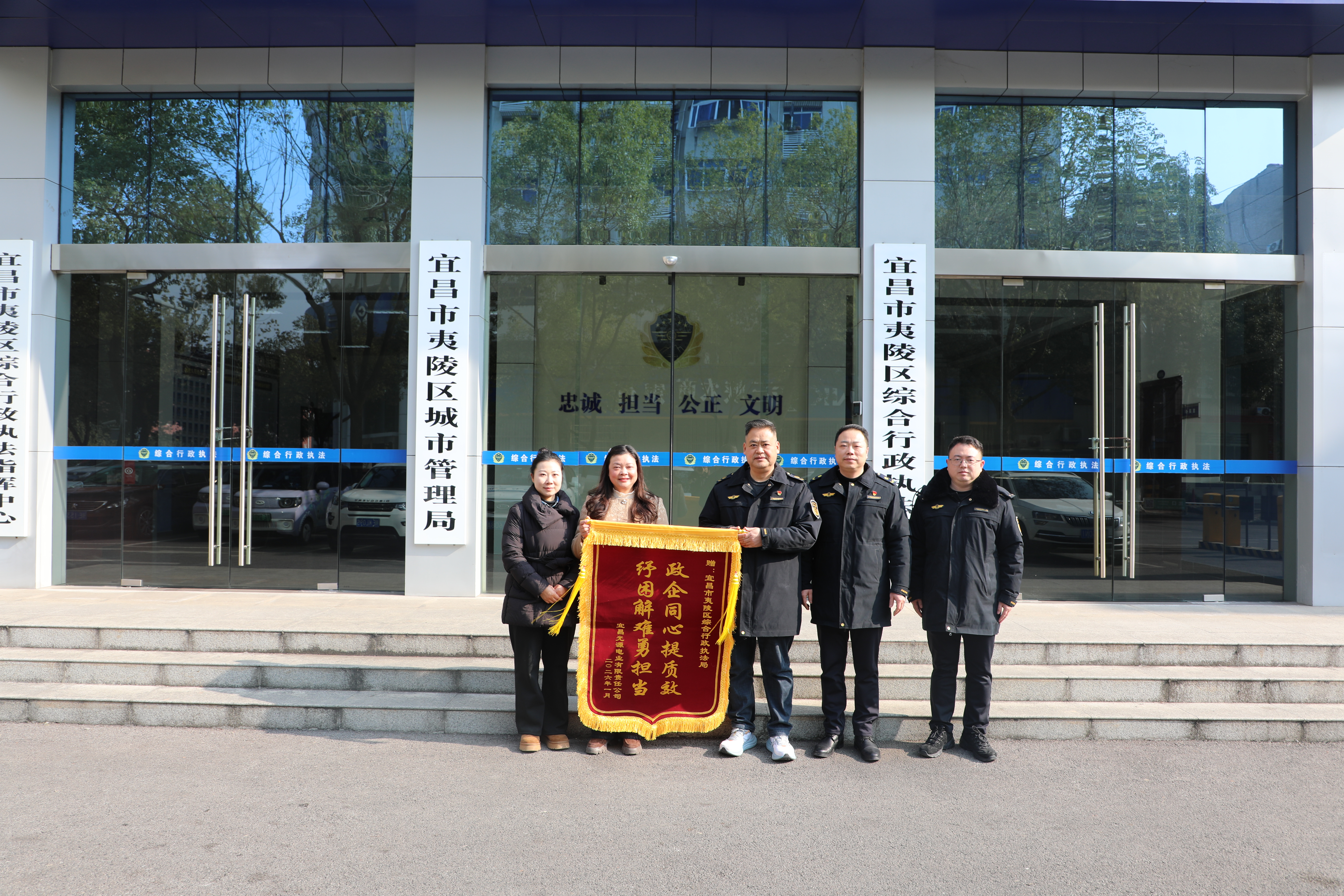 锦旗是荣誉勋章,更是责任考卷。夷陵区综合行政执法局将继续当好勤勉的守护者,不断强化服务意识,以“箭在弦上”的责任感、“使命必达”的执行力,主动出击、勇破难题,全力为营商环境“施肥浇水”,用心践行为民服务的庄严使命。